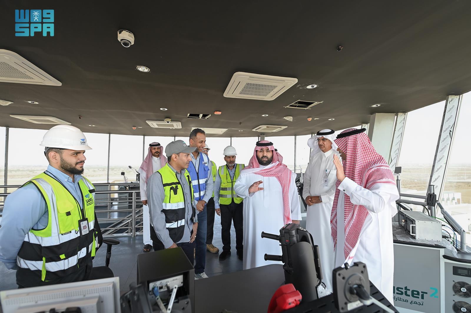 واطّلع سموه خلال الجولة، على عرضٍ تقديمي عن مراحل تنفيذ المشروع، حيث بلغت نسبة الإنجاز (92%)، فيما صُمم المطار بطاقة استيعابية تصل إلى (5.4) ملايين مسافر سنويًا، إلى جانب مرافق وخدمات حديثة جرى تصميمها وفق أعلى المعايير الدولية، بما يسهم في الارتقاء بتجربة المسافرين وتحسين كفاءة التشغيل.