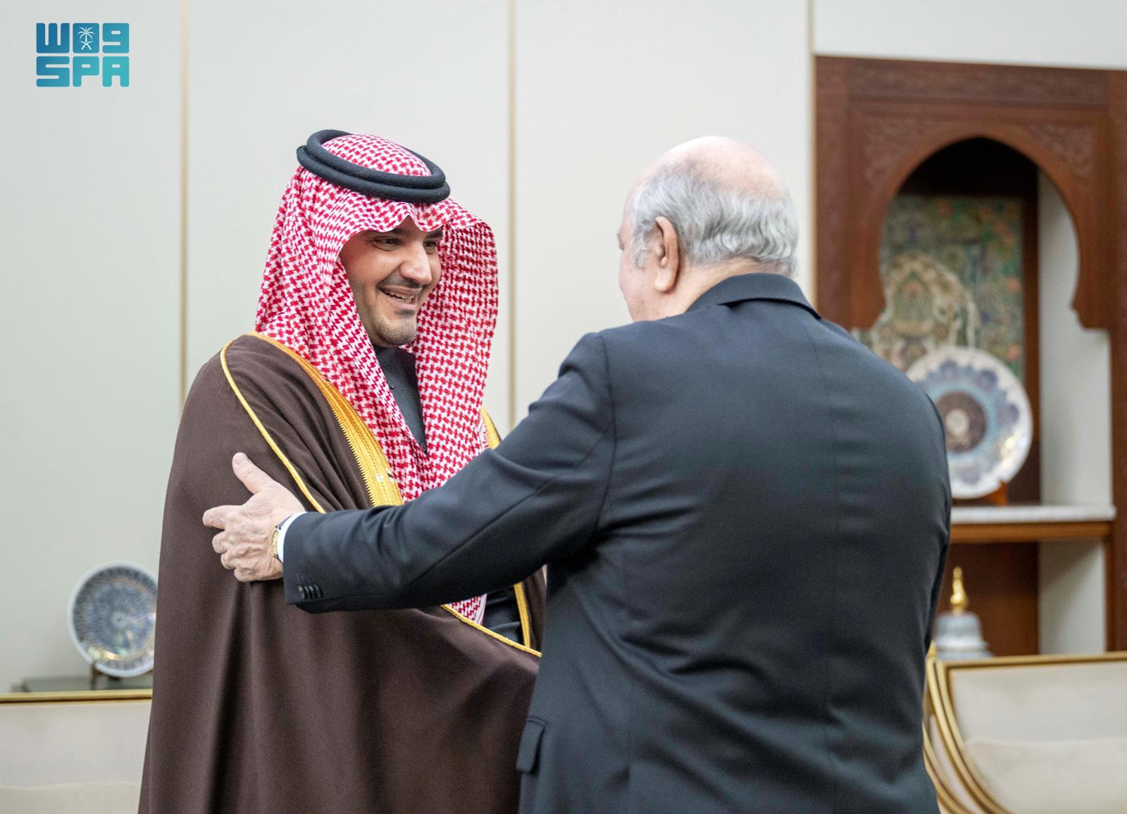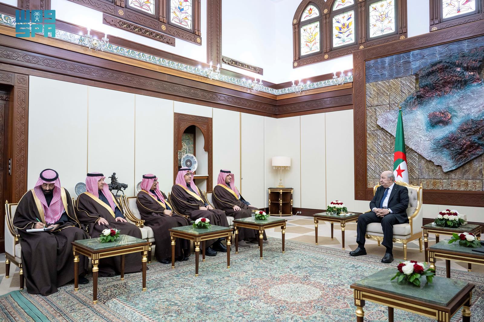 بناءً على توجيه صاحب السمو الملكي الأمير محمد بن سلمان بن عبدالعزيز آل سعود ولي العهد رئيس مجلس الوزراء -حفظه الله-، التقى صاحب السمو الملكي الأمير عبدالعزيز بن سعود بن نايف بن عبدالعزيز وزير الداخلية، اليوم، فخامة الرئيس عبدالمجيد تبون رئيس الجمهورية الجزائرية الديمقراطية الشعبية، وذلك في القصر الرئاسي بالعاصمة الجزائر.