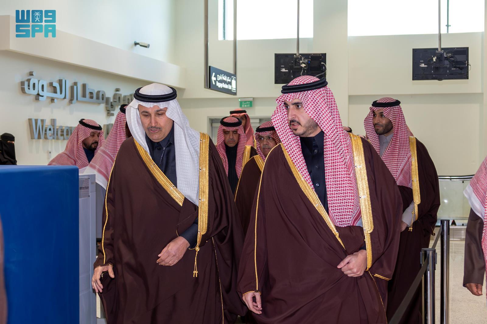 اطّلع صاحب السمو الملكي الأمير فيصل بن نواف بن عبدالعزيز أمير منطقة الجوف، اليوم خلال جولة ميدانية على مرافق مطار الجوف الدولي الجديد، بحضور صاحب السمو الملكي الأمير متعب بن مشعل بن بدر بن سعود نائب أمير المنطقة، ومعالي وزير النقل والخدمات اللوجستية المهندس صالح بن ناصر الجاسر، ومعالي رئيس الهيئة العامة للطيران المدني الأستاذ عبدالعزيز بن عبدالله الدعيلج، وعددٍ من المسؤولين.