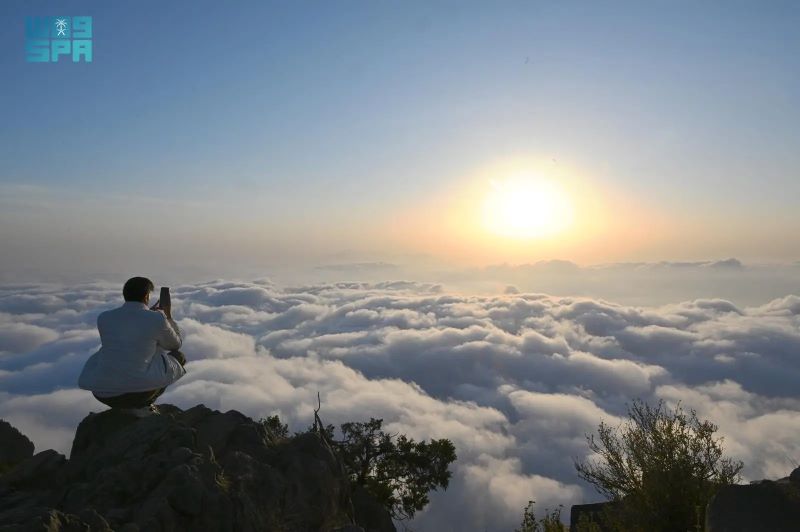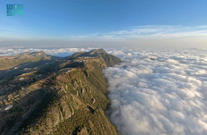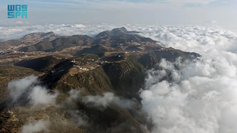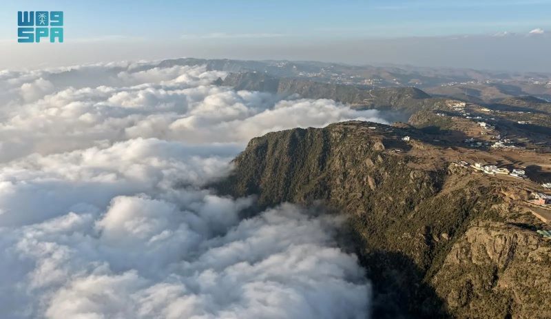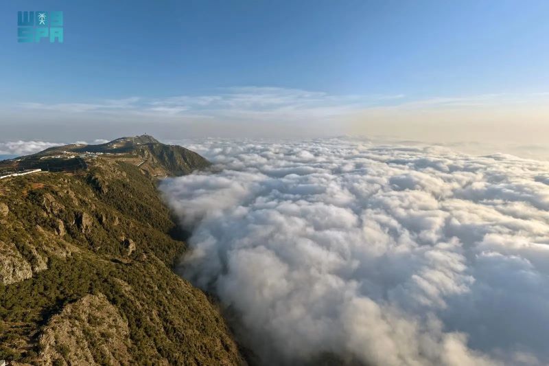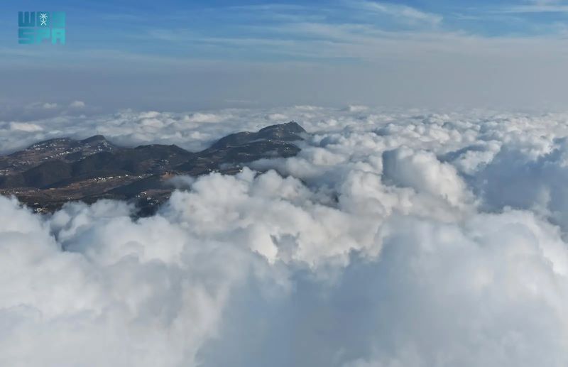 ووثقت “واس” امتداد السحب المنخفضة على السفوح والمرتفعات، وهي تحتضن غابات العرعر الشهيرة، وتوشح الأشجار المعمّرة بالندى والرطوبة، في لوحة طبيعية شتوية تضفي على المكان سحرًا خاصًا.
