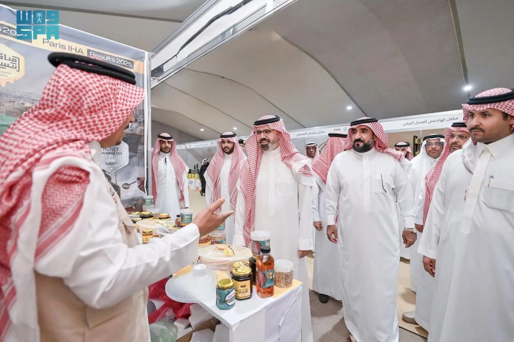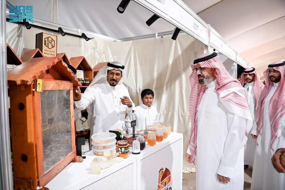 واطّلع سموه على مشاركة عدد من الجهات الحكومية والجمعيات المتخصصة في المعرض، التي تسهم في دعم منظومة العسل وتعزيز استدامة هذا المنتج الزراعي المهم، ورفع كفاءة الإنتاج وتسويق منتجات النحالين.
