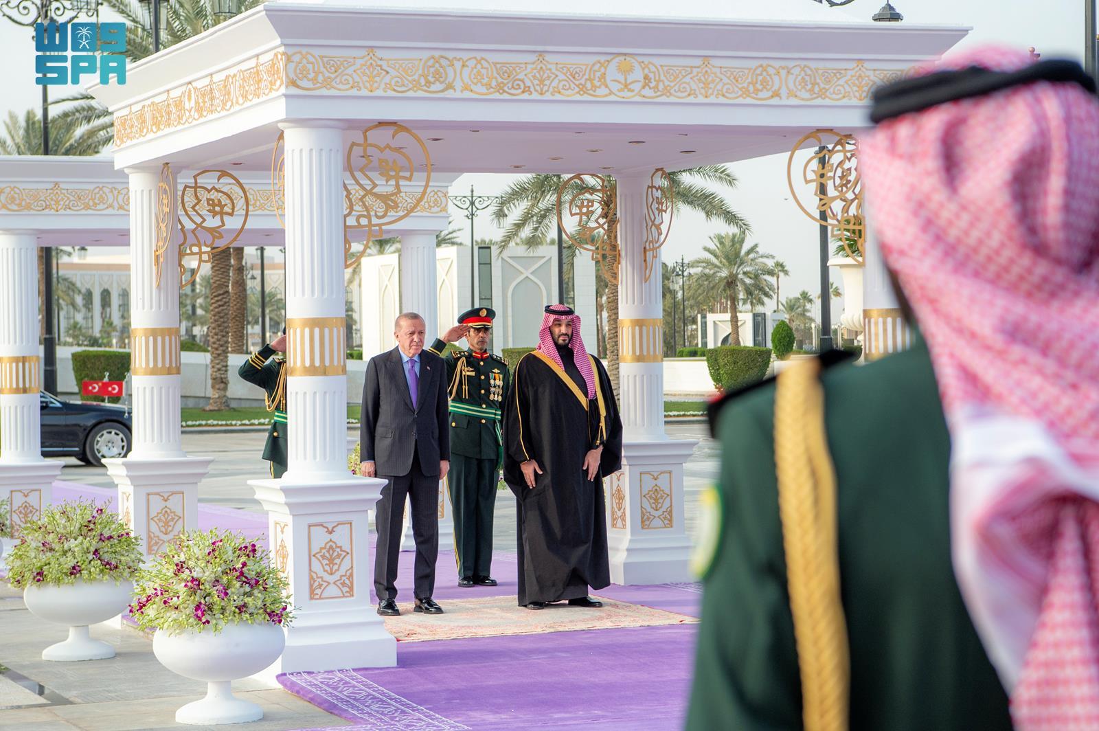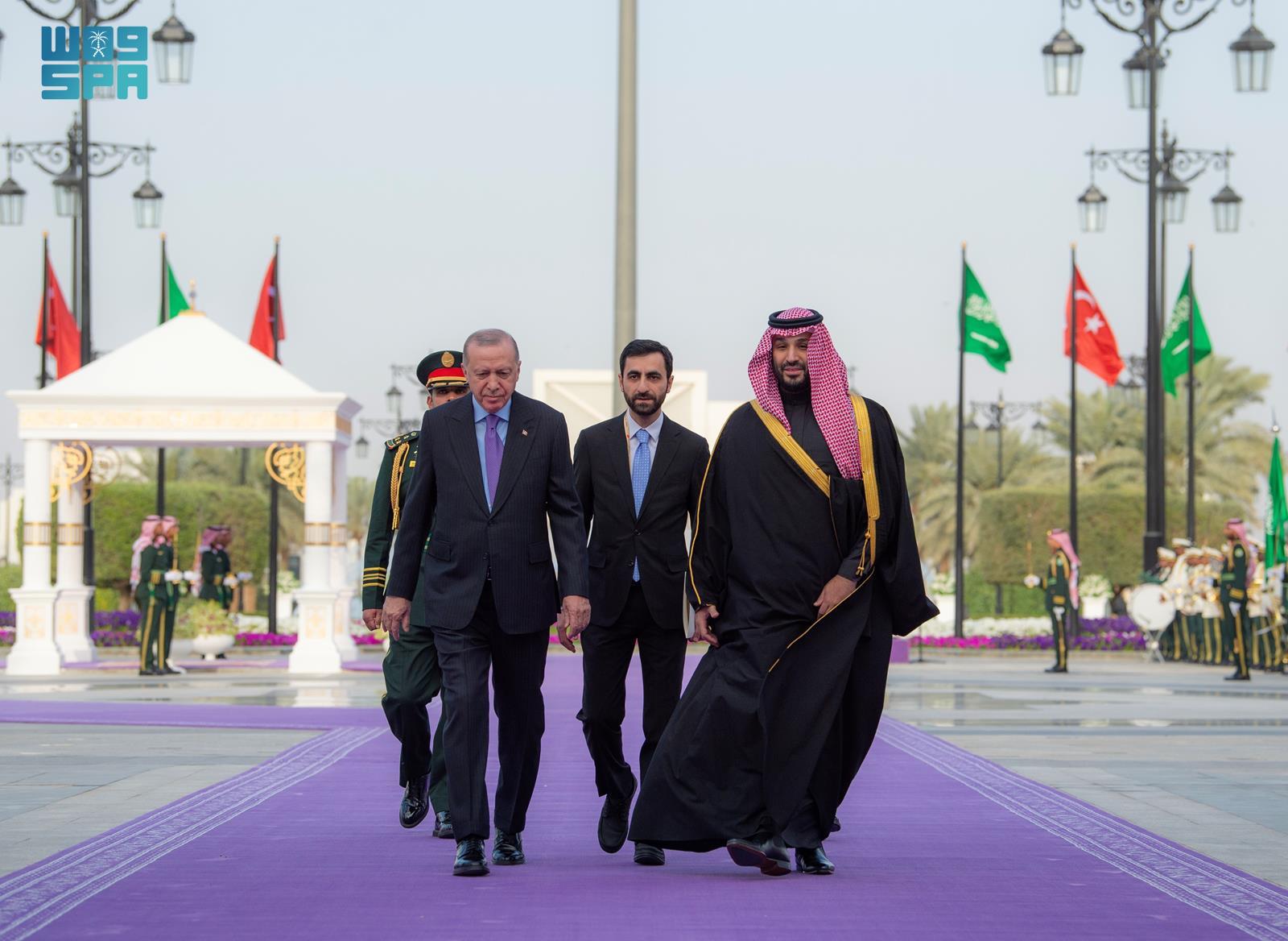 ولي العهد يستقبل رئيس تركيا ويعقدان جلسة مباحثات رسمية
