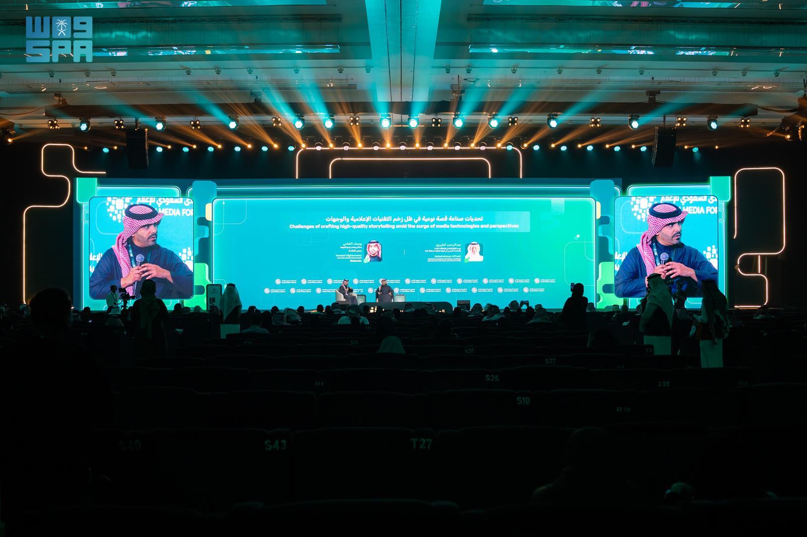 وتطرقت الجلسة إلى دور التقنيات الحديثة في تطوير أساليب السرد الإعلامي، دون الإخلال بجوهر الرسالة، مؤكدة ضرورة الموازنة بين الابتكار التقني والمحتوى العميق، والانتقال من الاكتفاء بنقل الخبر إلى بناء قصة قادرة على الإقناع، والاستدامة، وترك الأثر.
