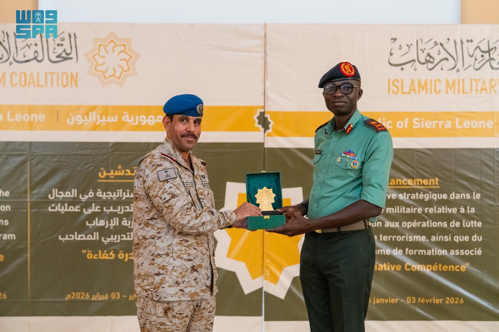 اختتم التحالف الإسلامي العسكري لمحاربة الإرهاب أعمال البرنامج العسكري للتدريب على عمليات محاربة الإرهاب وإبطال الألغام والعبوات الناسفة “كفاءة” في جمهورية سيراليون، وذلك بحضور مساعد القائد العسكري بالتحالف اللواء الطيار الركن عبدالله بن حامد القرشي، ورئيس هيئة الأركان العامة للقوات المسلحة السيراليونية اللواء الركن سار ديفيد توماس.