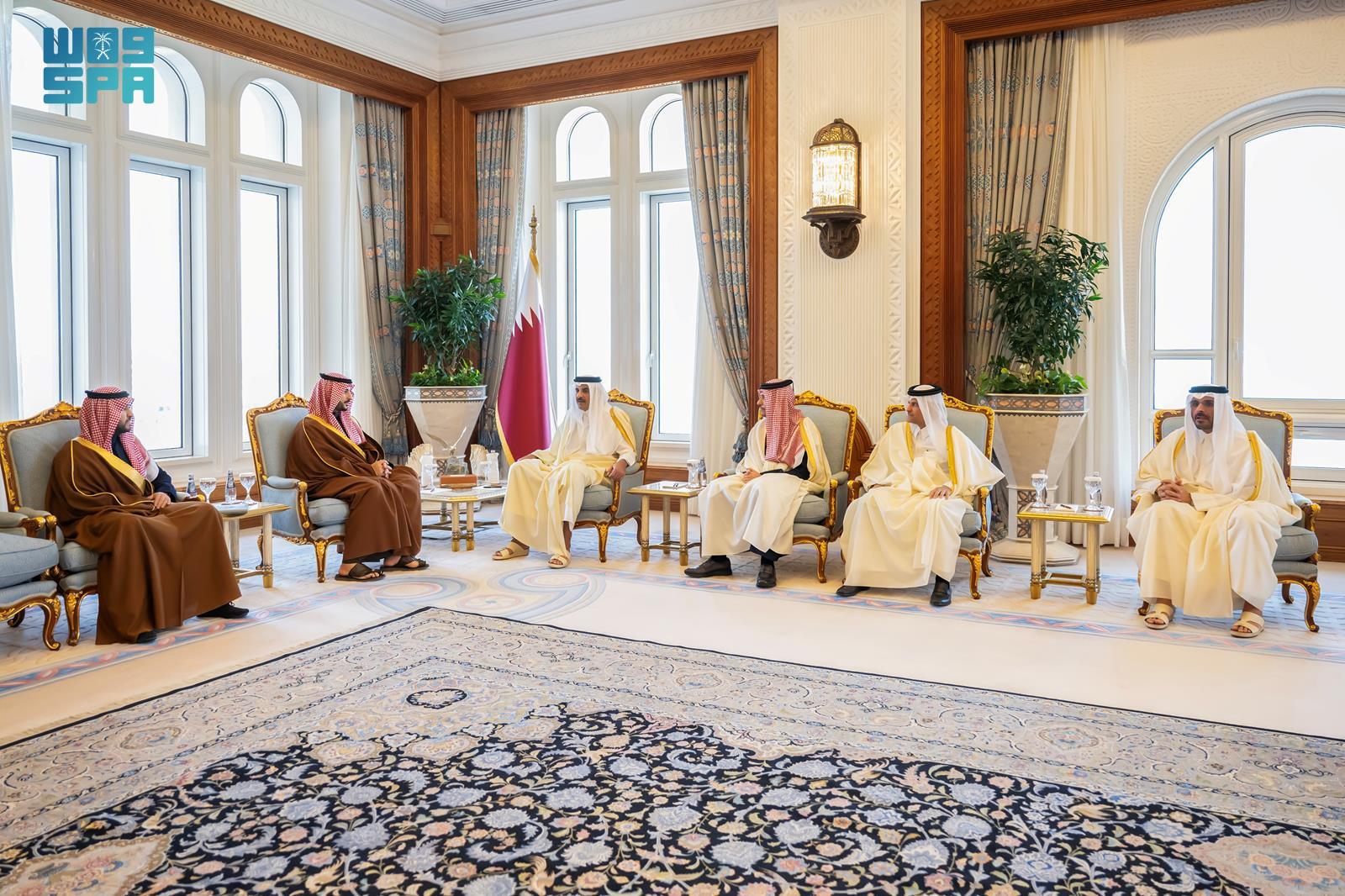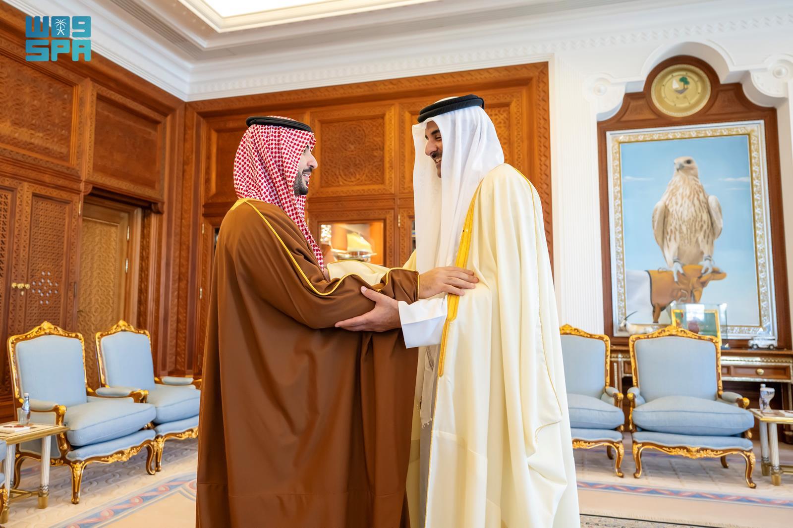 ونقل سمو وزير الدفاع خلال اللقاء تحيات خادم الحرمين الشريفين الملك سلمان بن عبدالعزيز آل سعود، وصاحب السمو الملكي الأمير محمد بن سلمان بن عبدالعزيز آل سعود ولي العهد رئيس مجلس الوزراء -حفظهما الله- لسموه، وتمنياتهما لحكومة وشعب دولة قطر الشقيق المزيد من التقدم والازدهار، فيما حمل سمو أمير دولة قطر تحياته وتقديره لخادم الحرمين الشريفين وسمو ولي العهد رئيس مجلس الوزراء.