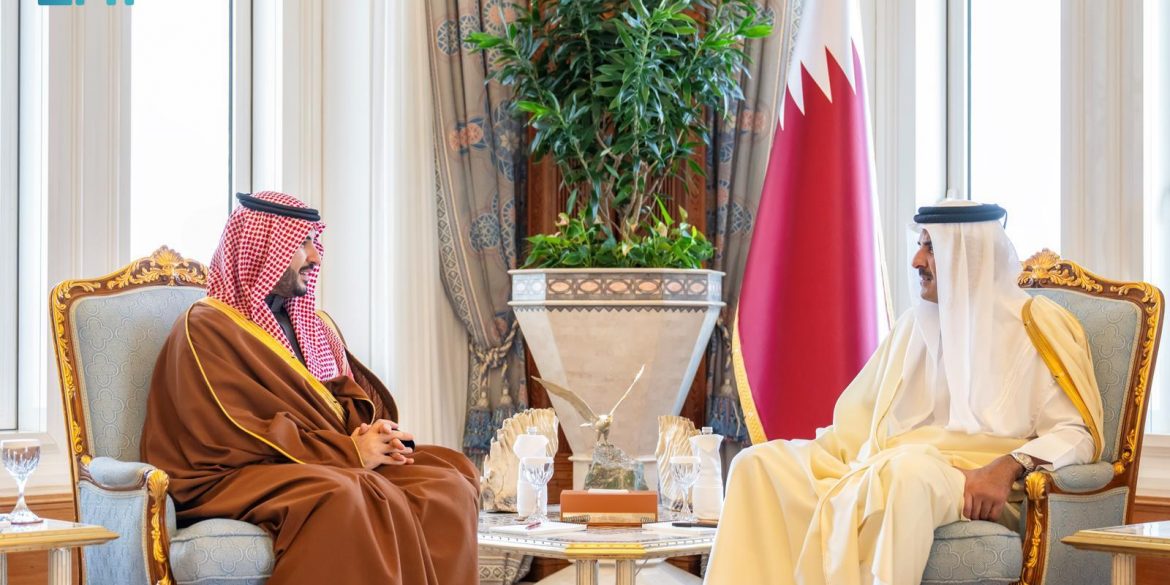 بتوجيه من القيادة -أيدها الله- التقى صاحب السمو الملكي الأمير خالد بن سلمان بن عبدالعزيز وزير الدفاع، في الديوان الأميري بالعاصمة القطرية الدوحة، اليوم، صاحب السمو الشيخ تميم بن حمد آل ثاني أمير دولة قطر.