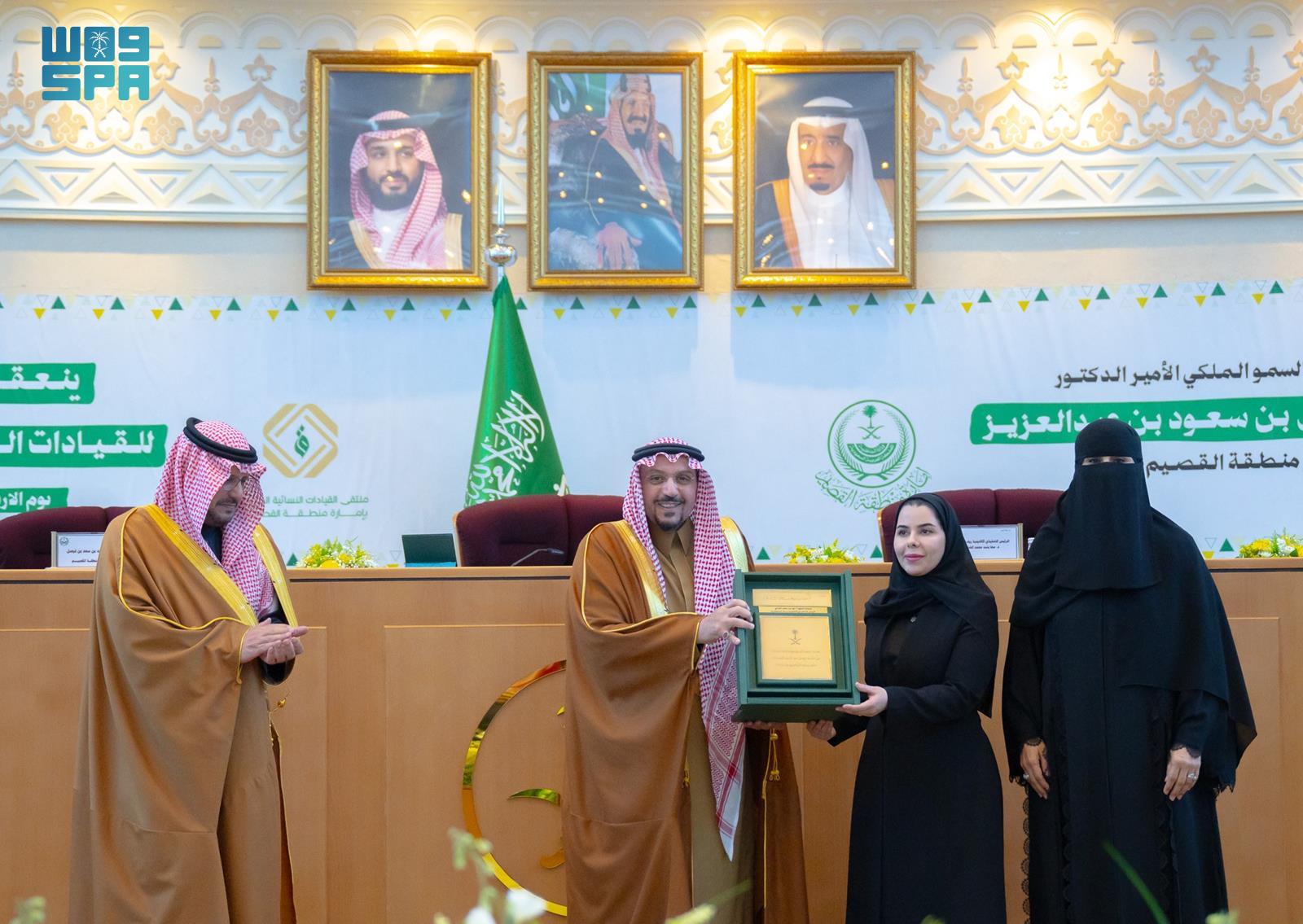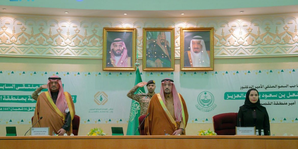 رعى صاحب السمو الملكي الأمير الدكتور فيصل بن مشعل بن سعود بن عبدالعزيز، أمير منطقة القصيم، بحضور صاحب السمو الأمير فهد بن سعد بن فيصل بن سعد، نائب أمير المنطقة، ملتقى القيادات النسائية في نسخته السابعة، وذلك بمشاركة أكثر من (300) قيادية من مختلف القطاعات بالمنطقة، في قاعة الدرعية بديوان الإمارة.