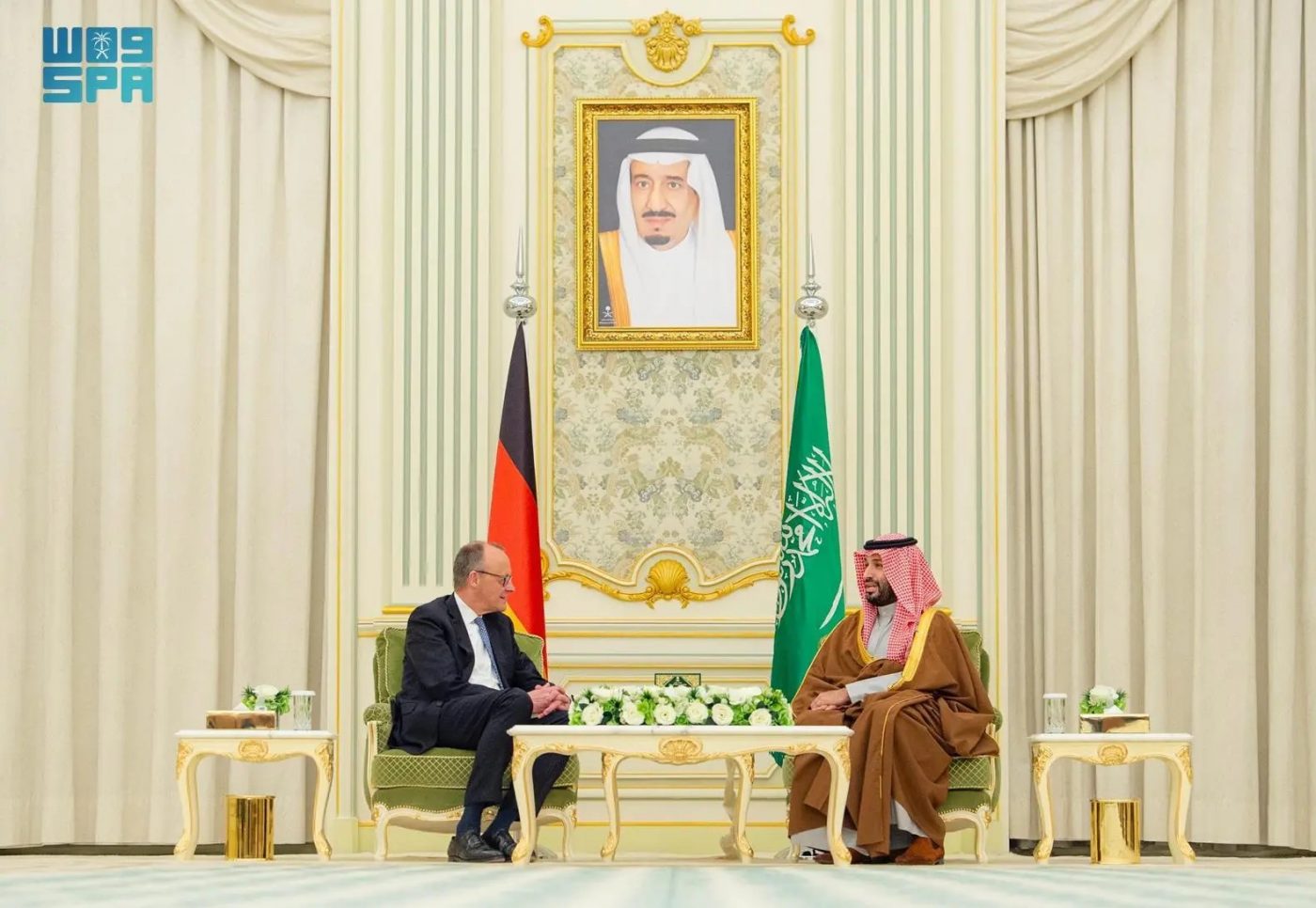 استقبل صاحب السمو الملكي الأمير محمد بن سلمان بن عبدالعزيز آل سعود ولي العهد رئيس مجلس الوزراء، في الديوان الملكي في قصر اليمامة بالرياض مساء اليوم، دولة المستشار الاتحادي لجمهورية ألمانيا الاتحادية فريدريش ميرتس.