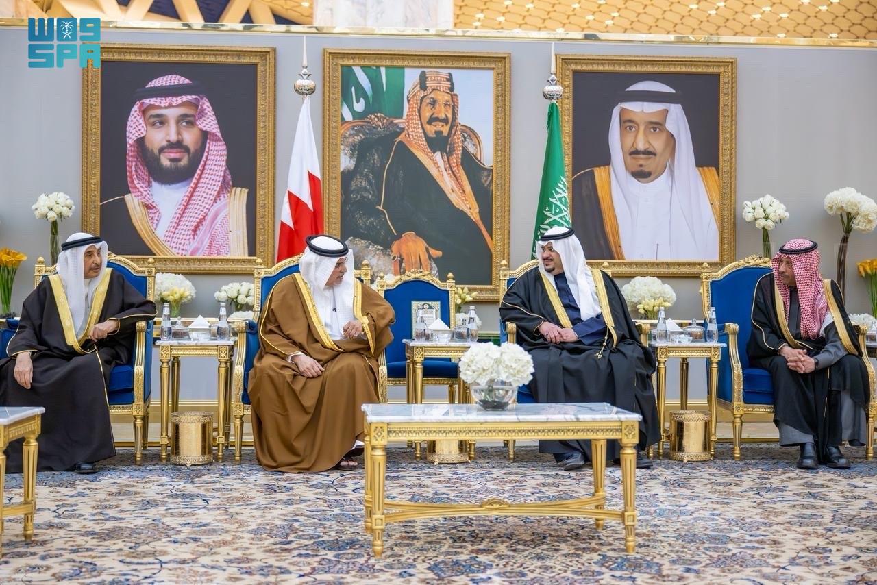 وكان في استقباله في مطار الملك خالد الدولي، صاحب السمو الملكي الأمير محمد بن عبدالرحمن بن عبدالعزيز نائب أمير منطقة الرياض، وسفير خادم الحرمين الشريفين لدى البحرين نايف بن بندر السديري، وسفير البحرين لدى المملكة الشيخ علي بن عبدالرحمن آل خليفة، ومدير شرطة المنطقة المكلف اللواء منصور بن ناصر العتيبي، ووكيل المراسم الملكية فهد الصهيل.