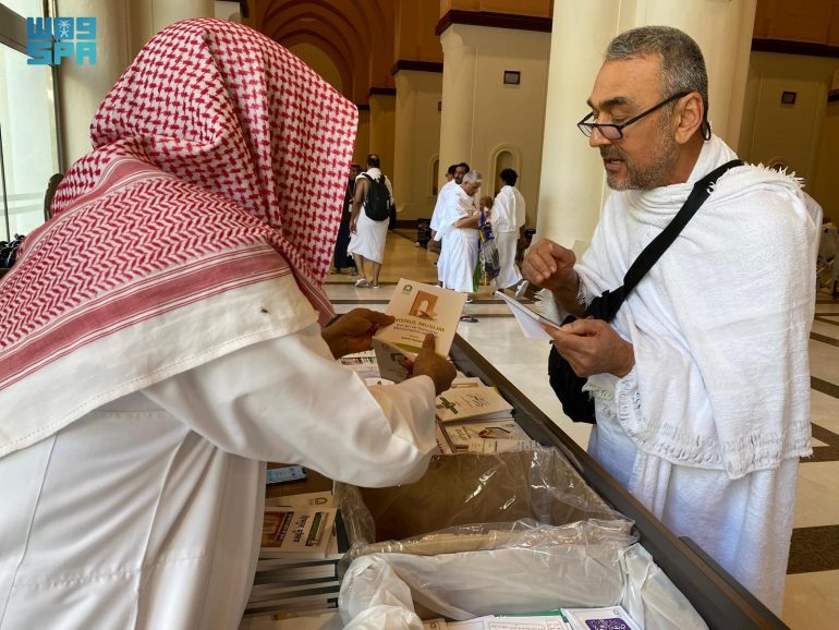 المواد العلمية والإرشادية، من كتيبات ومطويات ومحتوى رقمي بعدة لغات بما يسهم في توعيتهم بأحكام النسك وآدابه وتعزيز الوعي الشرعي لديهم بأسلوب تقني حديث وميسر, كما يقدّم عدد من الدعاة الرسميين بالفرع خدمات الإجابة عن استفسارات السائلين والرد على أسئلة الزوار والمعتمرين ميدانيًّا وبيان الأحكام الشرعية المتعلقة بالإحرام والعمرة والزيارة بما يحقق الطمأنينة للزائر، ويعينه على أداء نسكه على بصيرة.