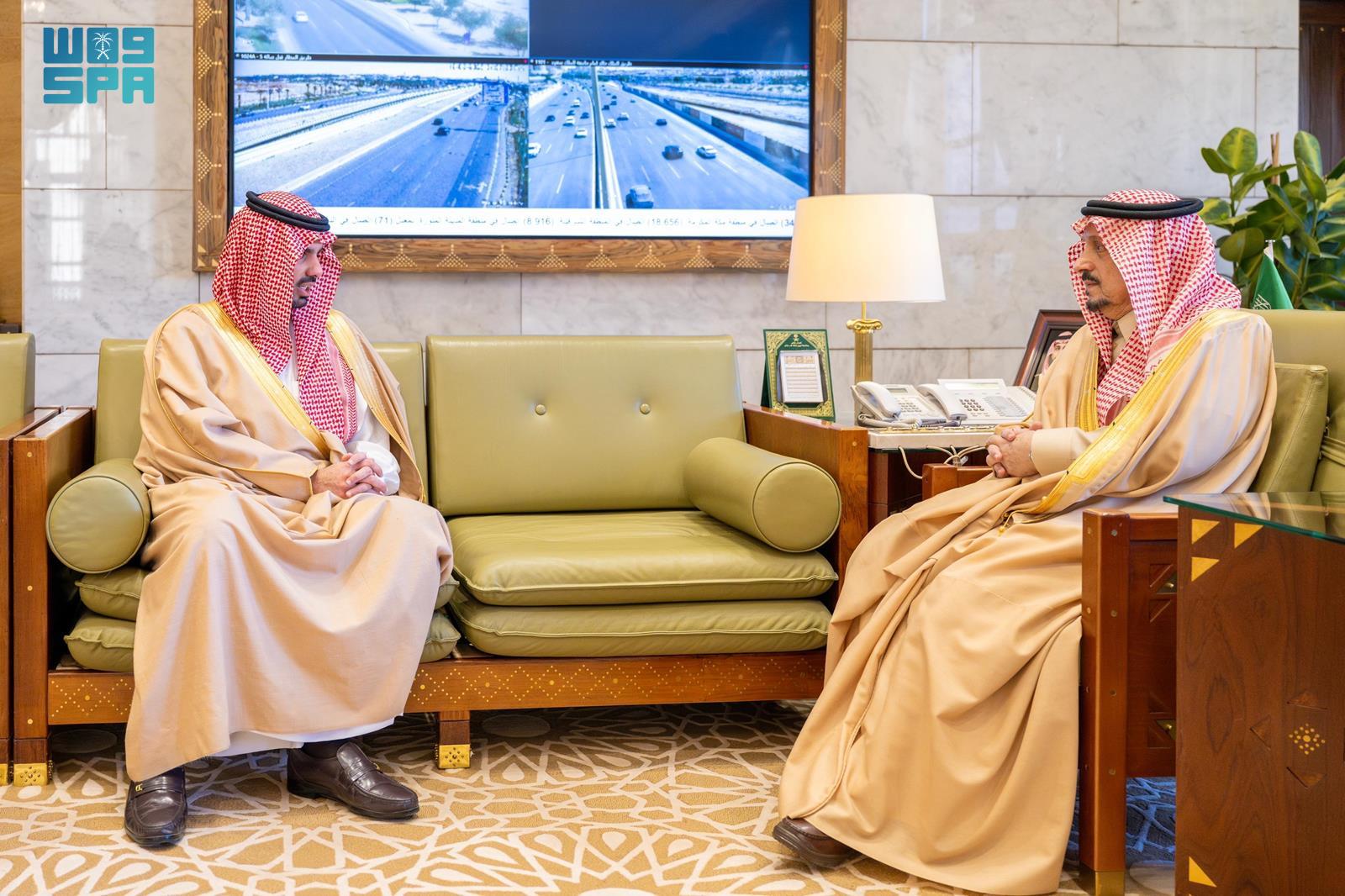 استقبل صاحب السمو الملكي الأمير فيصل بن بندر بن عبدالعزيز أمير منطقة الرياض, في مكتبه بقصر الحكم اليوم، صاحب السمو الأمير فيصل بن عبدالعزيز بن عيّاف أمين المنطقة، الذي قدم التهنئة بمناسبة حلول شهر رمضان.