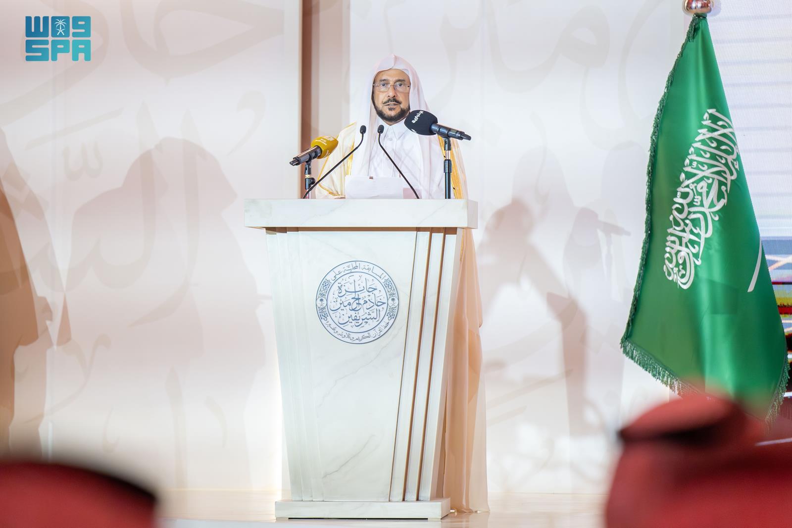 وأضاف معاليه أن الدورة الحالية شهدت مشاركة واسعة من مختلف مناطق المملكة، حيث تنافس أكثر من (3600) متسابق ومتسابقة في التصفيات الأولية، تأهل منهم (129) متسابقًا ومتسابقة إلى التصفيات النهائية، فيما بلغ مجموع الجوائز سبعة ملايين ريال، تُوِّج بها الفائزون والفائزات ونرجو أن يكونوا مشاعل هداية وقدوات صالحة في مجتمعاتهم.