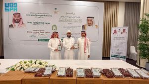 وأوضح السفير ابن عبية أن البرامج تأتي ضمن منظومة تنفذها الوزارة في “120” دولة حول العالم، مبينًا أن حصة بنجلاديش تضمنت توزيع “40” طنًا من التمور السعودية الفاخرة، وتنفيذ برنامج تفطير الصائمين الذي يستهدف “70” دولة، إضافة إلى توزيع نسخ من المصحف الشريف، إلى جانب إيفاد عدد من الأئمة لإمامة المصلين خلال الشهر المبارك.