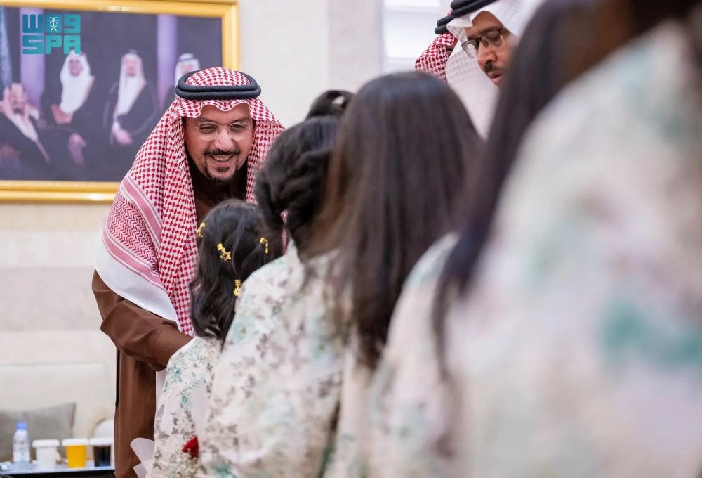 وتبادل سموه الأحاديثَ الودية مع الأبناء، واطمأن على أحوالهم الدراسية والمعيشية، حاثًّا إياهم على الجد والاجتهاد، ومواصلة التفوق والتميز، مؤكدًا أن الوطن يعتز بهم ويعوّل عليهم في بناء مستقبلٍ مشرقٍ بإذن الله.