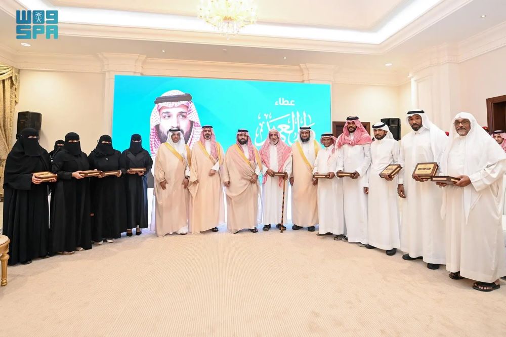 سلّم صاحب السمو الملكي الأمير محمد بن عبدالعزيز بن محمد بن عبدالعزيز أمير منطقة جازان، بحضور صاحب السمو الأمير ناصر بن محمد بن عبدالله بن جلوي نائب أمير المنطقة، وثائق تملّك الوحدات السكنية للمستفيدين من الأسر المستحقة في المنطقة، ضمن التبرع السخي الذي قدّمه صاحب السمو الملكي الأمير محمد بن سلمان بن عبدالعزيز ولي العهد رئيس مجلس الوزراء- حفظه الله- بمبلغ مليار ريال على نفقته الخاصة.