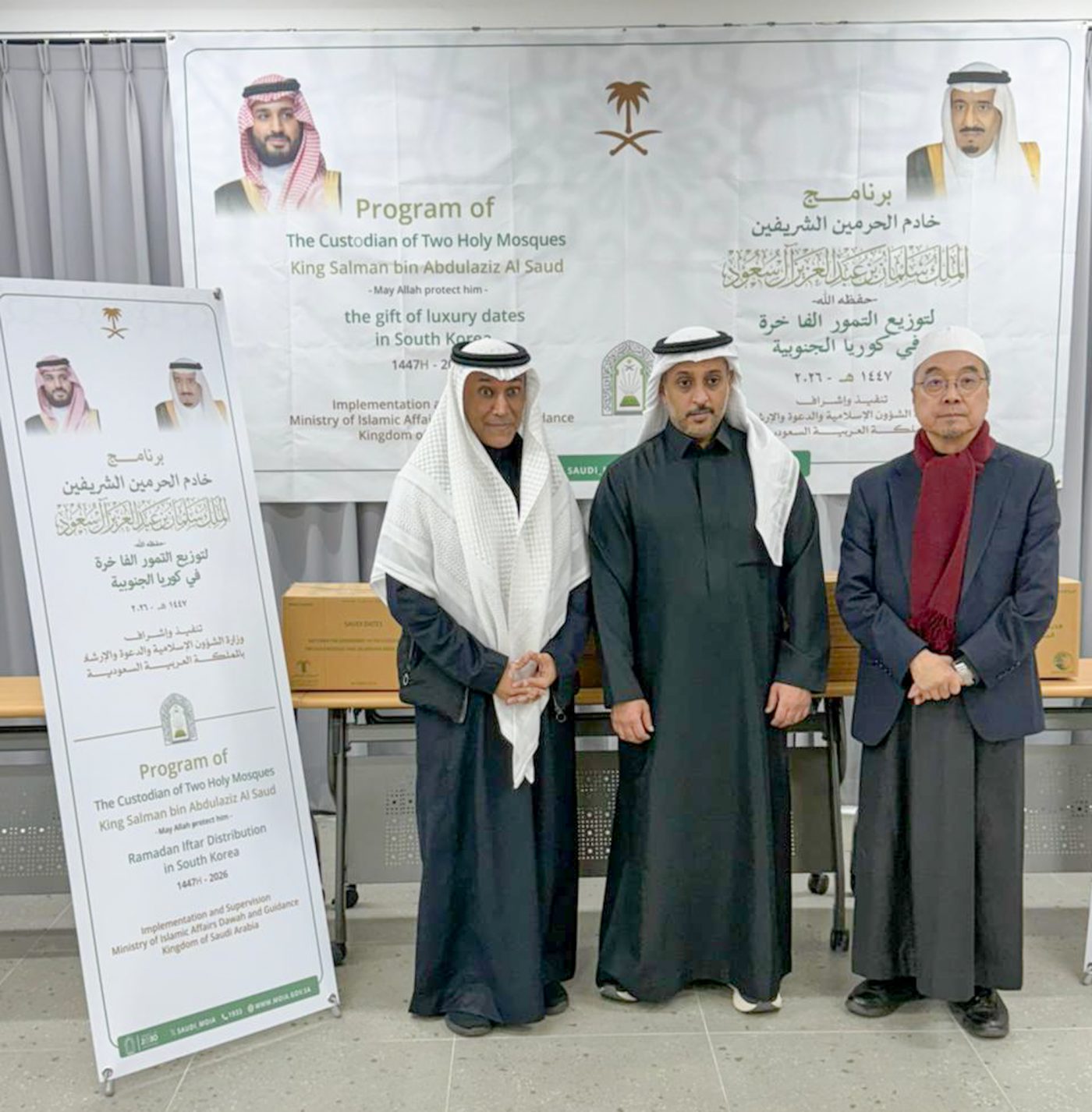 كما نفذت وزارة الشؤون الإسلامية والدعوة والإرشاد في سفارة المملكة بجمهورية كوريا برنامجي خادم الحرمين الشريفين لتوزيع التمور وتفطير الصائمين في كوريا، وذلك في مسجد سيئول المركزي، بحضور القائم بأعمال سفارة المملكة في كوريا فهد البركة.