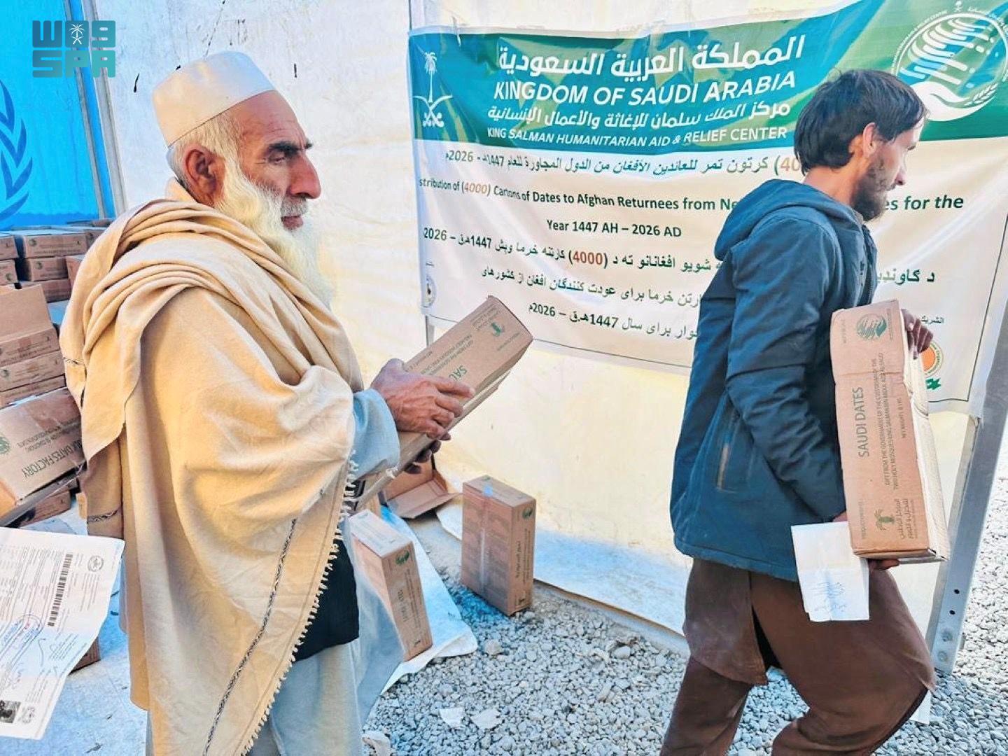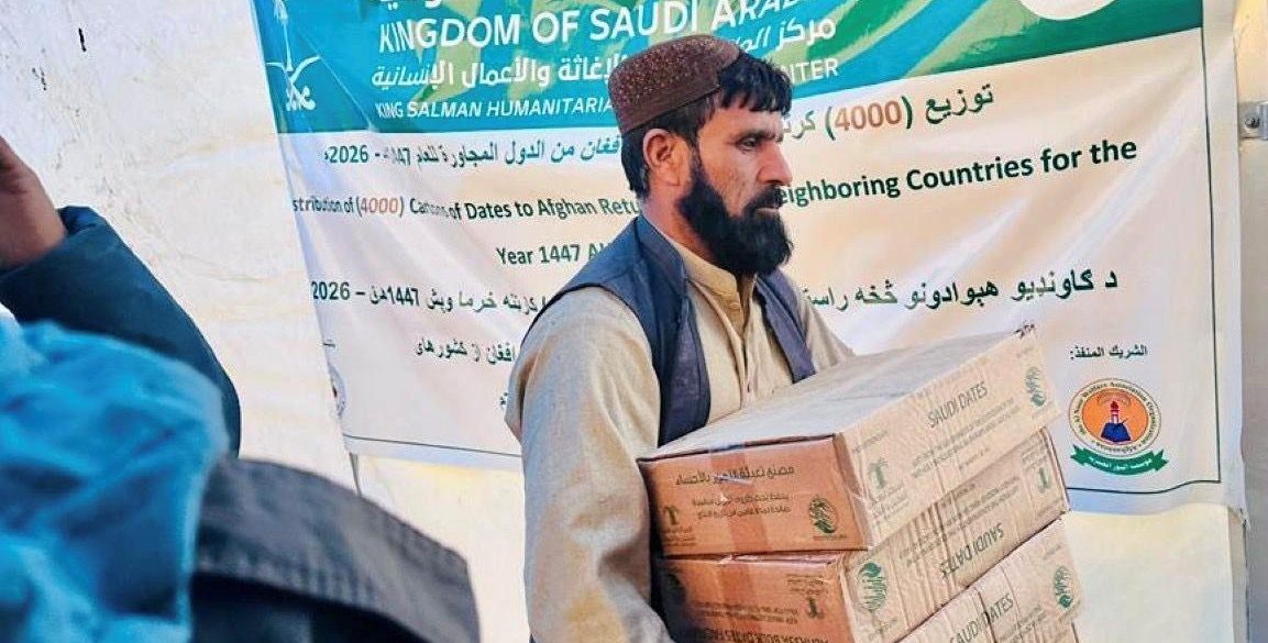 وزّع مركز الملك سلمان للإغاثة والأعمال الإنسانية أمس الأول (196) كرتون تمر على العائدين من باكستان وإيران إلى بلادهم في مخيم اللاجئين بمنطقة لواء بابا جان في ولاية كابُل بأفغانستان، استفاد منها (1,176) فردًا بواقع (196) أسرة، ضمن مشروع توزيع (4,000) كرتون تمر للشعب الأفغاني الشقيق للعام 2026م.