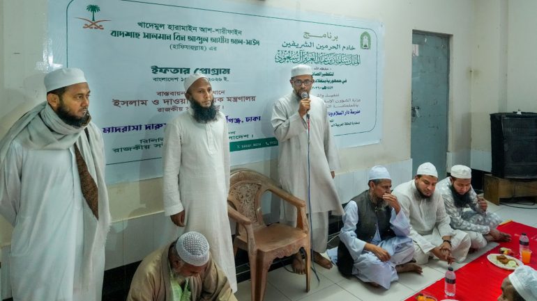 نفذت وزارة الشؤون الإسلامية والدعوة والإرشاد ممثلةً بالملحقية الدينية بسفارة المملكة في بنجلاديش برنامج خادم الحرمين الشريفين لتفطير الصائمين لعام 1447هـ في جامع الوالدين ومدرسة دار السلام ودار الأيتام بمنطقة كيراني غنج في العاصمة دكا.