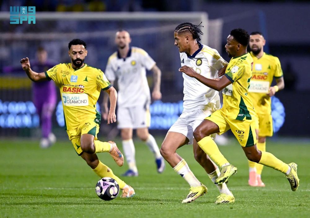 وسجّل أهداف النصر كلٌّ من عبدالله الحمدان في الدقيقة (30)، وأيمن يحيى في الدقيقة (54)، فيما أحرز جواو فيليكس هدفين في الدقيقتين (73) و(79)، وأضاف أنجيلو غابرييل الهدف الخامس في الوقت بدل الضائع (90+1).