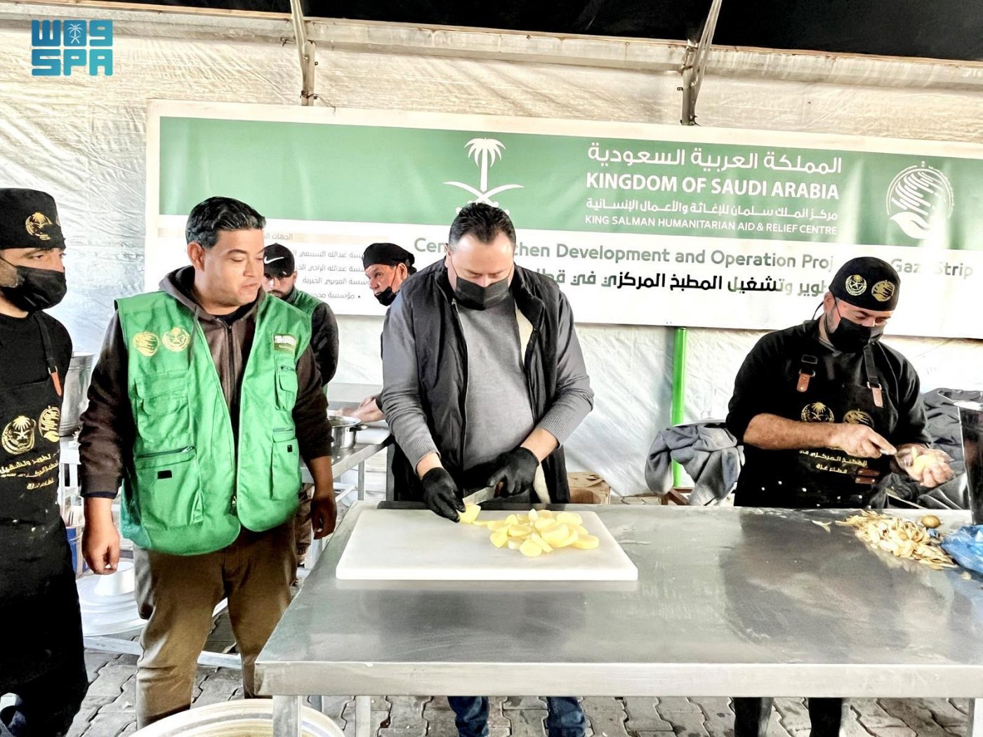 ضمن الحملة الشعبية السعودية لإغاثة الشعب الفلسطيني، وزع المطبخ المركزي التابع لمركز الملك سلمان للإغاثة والأعمال الإنسانية أمس (24,000) وجبة غذائية ساخنة على الأسر النازحة في قطاع غزة.
