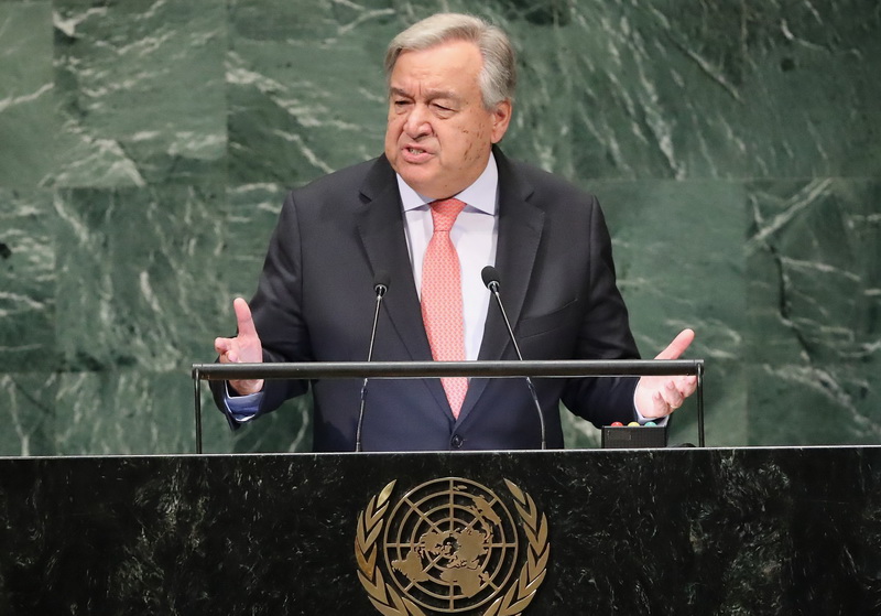 NEW YORK, NY - SEPTEMBER 25: Secretary General of the United Nations Antonio Guterres addresses the 73rd UN General Assembly meeting on September 25, 2018 in New York City. World leaders gathered for the annual meeting at the UN headquarters in Manhattan. John Moore/Getty Images/AFP