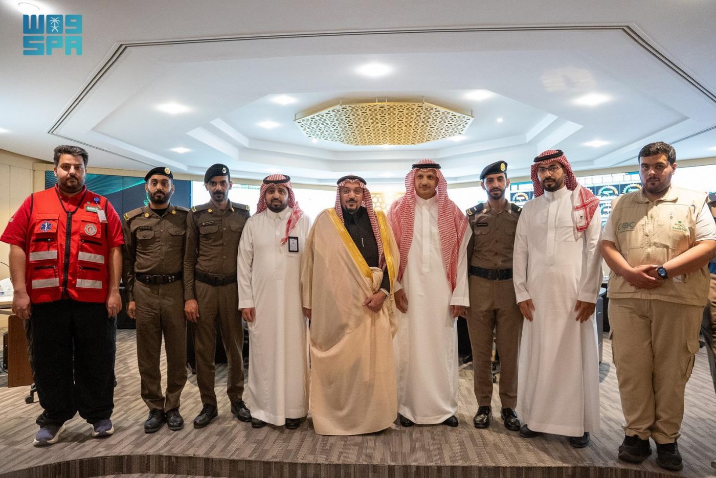 واطّلع على ما جُهّز به المركز من أحدث التجهيزات التقنية، وربطه المباشر بالجهات ذات العلاقة، وتغذيته بالبيانات الفورية التي تدعم سرعة ودقة اتخاذ القرار، وتعزز كفاءة إدارة الأزمات وفق أفضل الممارسات الحديثة.