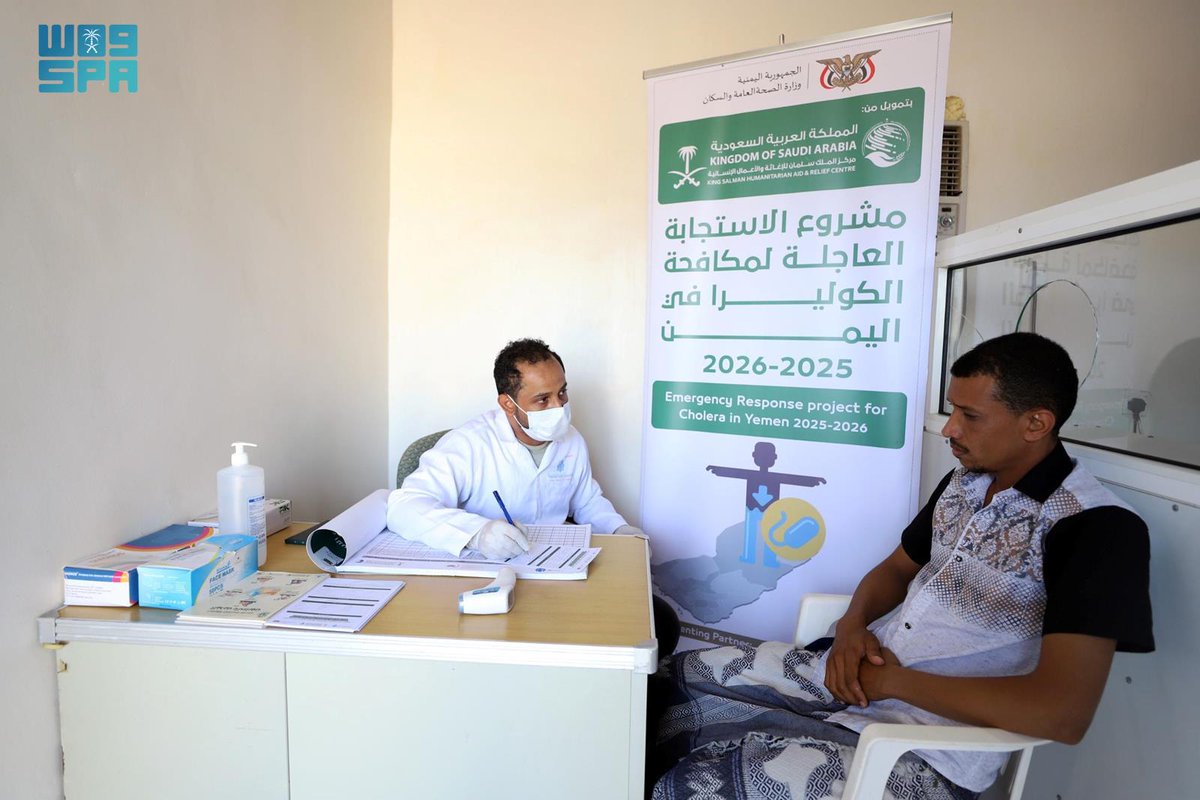 كما قدّم مشروع الاستجابة العاجلة لمكافحة الكوليرا في اليمن بدعم من مركز الملك سلمان للإغاثة والأعمال الإنسانية خدماته الطبية لـ(14.336) فردًا خلال الفترة من 25 فبراير حتى 3 مارس 2026م.