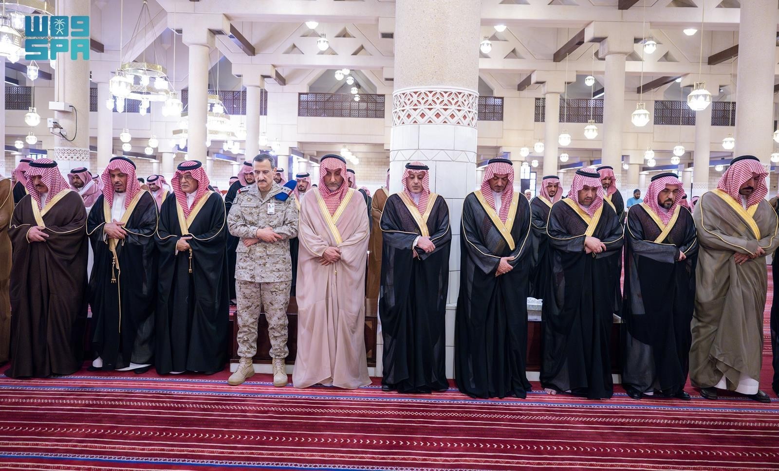 وأدى الصلاة مع سموه، صاحب السمو الأمير تركي بن عبدالله بن عبدالرحمن، وصاحب السمو الملكي الأمير سعود بن سعد بن عبدالعزيز، وصاحب السمو الأمير بدر بن فهد بن سعد الأول بن عبدالرحمن، وصاحب السمو الأمير متعب بن ثنيان بن محمد، وصاحب السمو الأمير عبدالرحمن بن سعود الكبير، وصاحب السمو الملكي الأمير بندر بن مساعد بن عبدالعزيز، وصاحب السمو الملكي الأمير الدكتور منصور بن متعب بن عبدالعزيز مستشار خادم الحرمين الشريفين وزير الدولة عضو مجلس الوزراء, وصاحب السمو الملكي الأمير متعب بن عبدالله بن عبدالعزيز, وصاحب السمو الملكي الأمير فيصل بن خالد بن عبدالعزيز مستشار خادم الحرمين الشريفين، وصاحب السمو الملكي الأمير محمد بن نواف بن عبدالعزيز مستشار خادم الحرمين الشريفين، وصاحب السمو الملكي الأمير سطام بن سعود بن عبدالعزيز، وصاحب السمو الأمير تركي بن محمد بن عبدالعزيز بن تركي، وصاحب السمو الملكي الأمير سلطان بن سلمان بن عبدالعزيز المستشار الخاص لخادم الحرمين الشريفين، وصاحب السمو الأمير سعود بن عبدالله بن ثنيان، صاحب السمو الملكي الأمير مشعل بن محمد بن سعود بن عبدالعزيز، وصاحب السمو الأمير أحمد بن عبدالله بن عبدالرحمن، وصاحب السمو الملكي الأمير طلال بن بدر بن سعود، وصاحب السمو الأمير فيصل بن يزيد بن عبدالله بن عبدالرحمن، وصاحب السمو الأمير الدكتور تركي بن سعود بن محمد، وصاحب السمو الأمير بندر بن سعود بن محمد، وصاحب السمو الملكي الأمير الدكتور عبدالعزيز بن سطام بن عبدالعزيز مستشار خادم الحرمين الشريفين، وصاحب السمو الأمير بندر بن سعد بن خالد، وصاحب السمو الملكي الفريق الركن تركي بن بندر بن عبدالعزيز قائد القوات الجوية الملكية السعودية، وصاحب السمو الأمير تركي بن محمد بن عبدالله بن عبدالرحمن، وصاحب السمو الملكي الأمير فيصل بن تركي بن عبدالعزيز المستشار بالديوان الملكي، وصاحب السمو الأمير سعود بن عبدالله بن محمد، وصاحب السمو الأمير الدكتور بندر بن سلمان بن محمد، وصاحب السمو الأمير فهد بن خالد بن عبدالله، وصاحب السمو الملكي الأمير محمد بن فيصل بن بندر بن عبدالعزيز، وصاحب السمو الملكي الأمير نهار بن عبدالله بن سعود بن عبدالعزيز، وصاحب السمو الأمير الدكتور محمد بن سلمان بن محمد، وصاحب السمو الأمير عبدالرحمن بن سعد بن عبدالرحمن بن سعد، وصاحب السمو الملكي الأمير عبدالعزيز بن طلال بن عبدالعزيز، وصاحب السمو الأمير عبدالله بن خالد بن عبدالله بن محمد بن عبدالرحمن، وصاحب السمو الأمير نايف بن سلطان بن محمد بن سعود الكبير، صاحب السمو الملكي الأمير بندر بن فيصل بن بندر بن عبدالعزيز مساعد رئيس الاستخبارات العامة، وصاحب السمو الملكي الأمير مشعل بن سلطان بن عبدالعزيز، وصاحب السمو الأمير سعود بن ناصر بن سعود بن فرحان، وصاحب السمو الملكي الأمير سلمان بن خالد بن سلطان بن عبدالعزيز، وصاحب السمو الأمير سعود بن سلطان بن محمد بن سعود الكبير، وصاحب السمو الأمير خالد بن عبدالعزيز بن عياف، وصاحب السمو الأمير مشعل بن متعب بن ثنيان.