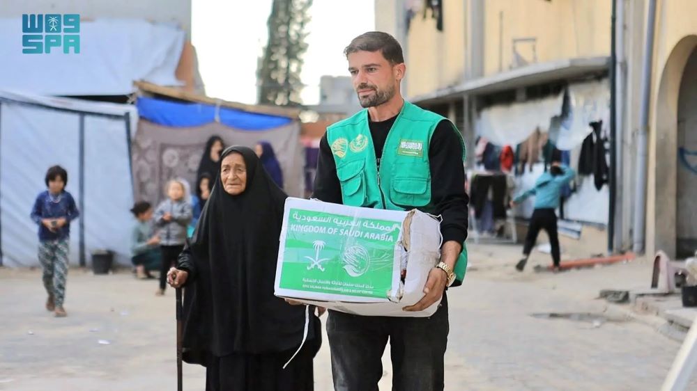 مركز الملك سلمان للإغاثة يوزع سلالًا غذائية على الأسر النازحة في مدينة خان يونس