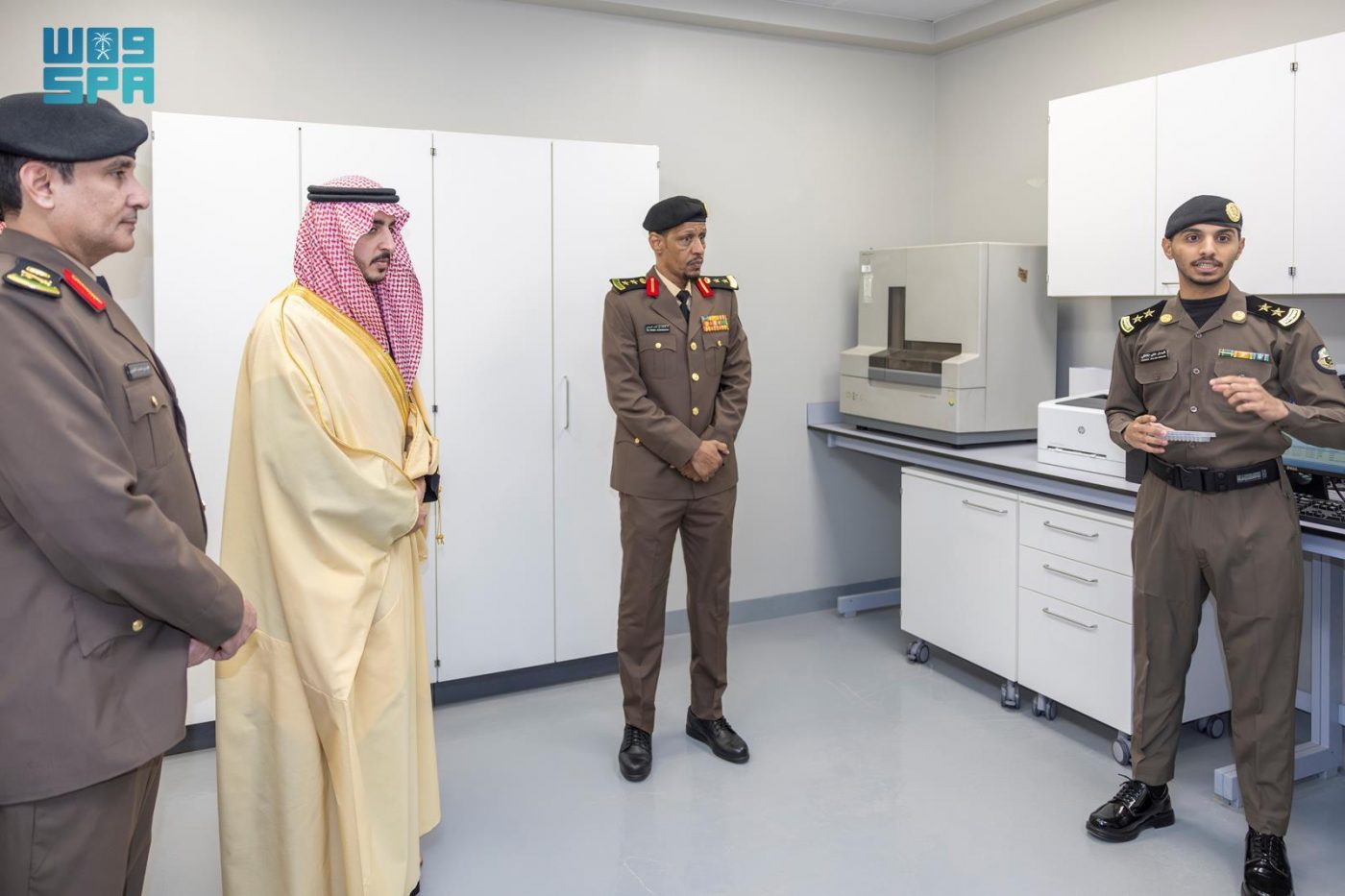 وتجوّل سموه في مرافق المبنى الذي يضم “6” مبانٍ تحتوي على “60” معملًا ومختبرًا مجهّزة وفق أحدث المواصفات الفنية والمعايير العالمية، بما يعزز كفاءة الأداء ويرتقي بالعمل الأمني الجنائي، واستمع إلى شرحٍ عن الإمكانات التقنية وآليات العمل ودورها في دعم أعمال الفحص والتحليل الجنائي بدقة، والإسهام في سرعة إنجاز القضايا.