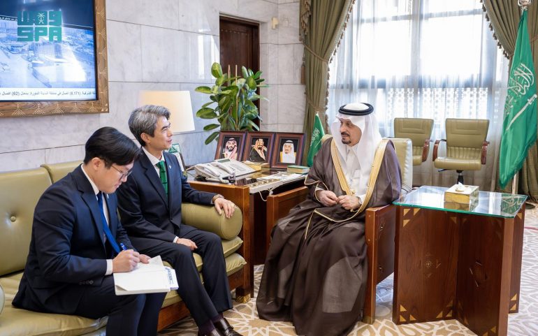 استقبل صاحب السمو الملكي الأمير فيصل بن بندر بن عبدالعزيز أمير منطقة الرياض، في مكتبه بقصر الحكم، اليوم، سفير جمهورية كوريا الجنوبية لدى المملكة شين تشول كانغ.