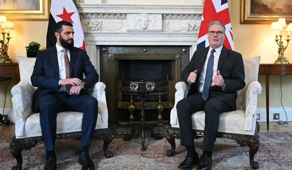 التقى رئيس الوزراء البريطاني كير ستارمر اليوم، الرئيس السوري أحمد الشرع، وذلك في مقر رئاسة الحكومة البريطانية بـ “داونينغ ستريت” بالعاصمة لندن.