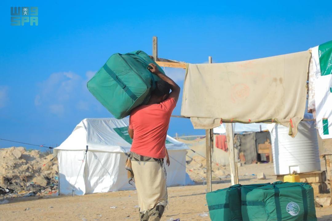 وزّع مركز الملك سلمان للإغاثة والأعمال الإنسانية أمس (96) حقيبة إيوائية و(96) خيمة في مديرية الريدة وقصيعر بمحافظة حضرموت، استفاد منهما (576) فردًا، ضمن المرحلة الخامسة من مشروع التدخلات الغذائية الطارئة في اليمن.