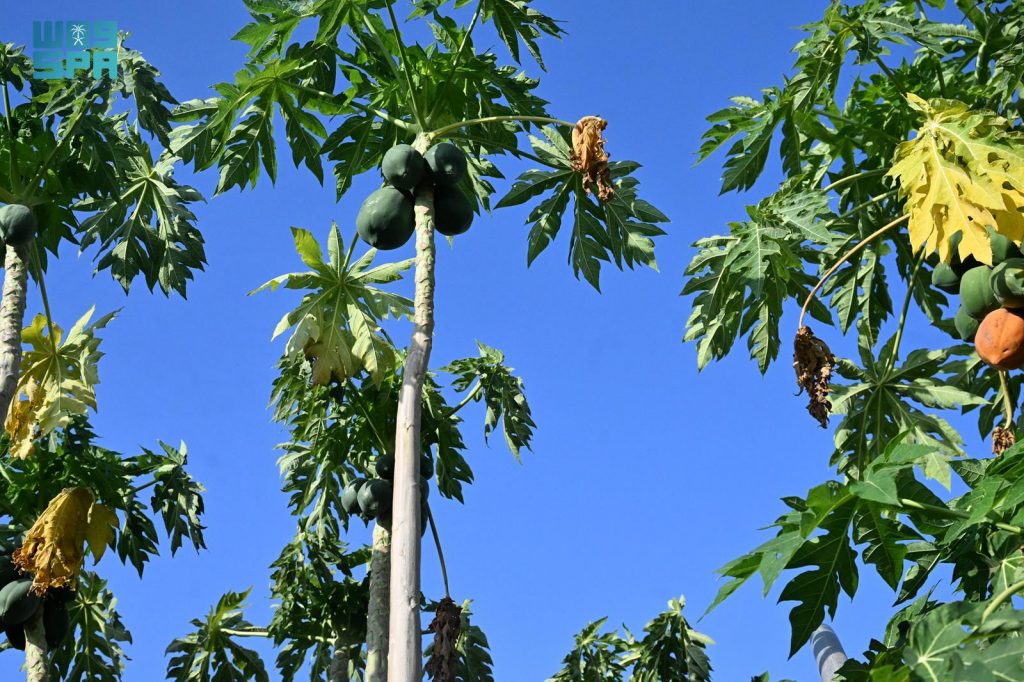 وشهدت مزارع جازان خلال السنوات الأخيرة توسعًا ملحوظًا في زراعة البابايا، مدفوعًا بوعي المزارعين بجدواها الاقتصادية وقدرتها على تحقيق عوائد مجزية في مساحاتٍ محدودة، إلى جانب ملاءمتها للظروف المناخية الحارة والرطبة، الأمر الذي أسهم في انتشارها في عددٍ من المحافظات، خاصةً في المواقع التي تتوفر فيها مصادر ريٍ مستقرة وتربة خصبة؛ حيث تضم المنطقة أكثر من (800,000) شجرة بابايا، بإنتاجٍ سنويٍ يتجاوز (40,000) طن، في مؤشرٍ يعكس تنامي أهمية هذا المحصول ضمن المنظومة الزراعية المحلية.