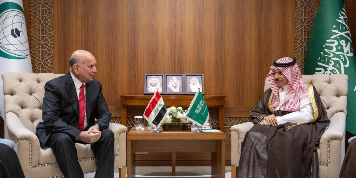 التقى صاحب السمو الأمير فيصل بن فرحان بن عبدالله وزير الخارجية، اليوم، معالي نائب رئيس مجلس الوزراء وزير الخارجية بجمهورية العراق الدكتور فؤاد محمد حسين، وذلك على هامش الدورة الاستثنائية الحادية والعشرين لمجلس وزراء خارجية الدول الأعضاء في منظمة التعاون الإسلامي لبحث العدوان الإسرائيلي المتواصل على الشعب الفلسطيني، المنعقدة بمقر المنظمة في جدة.
