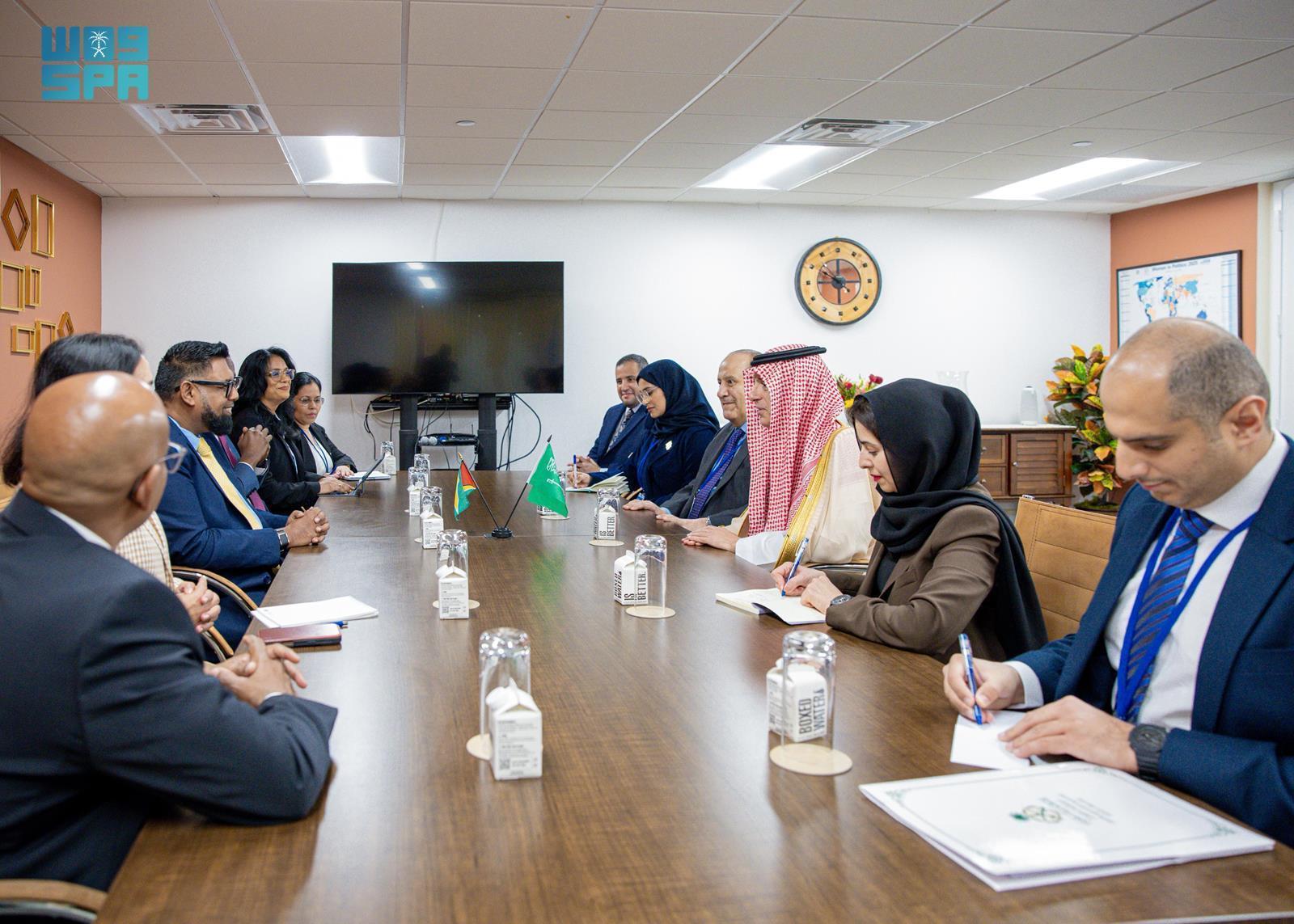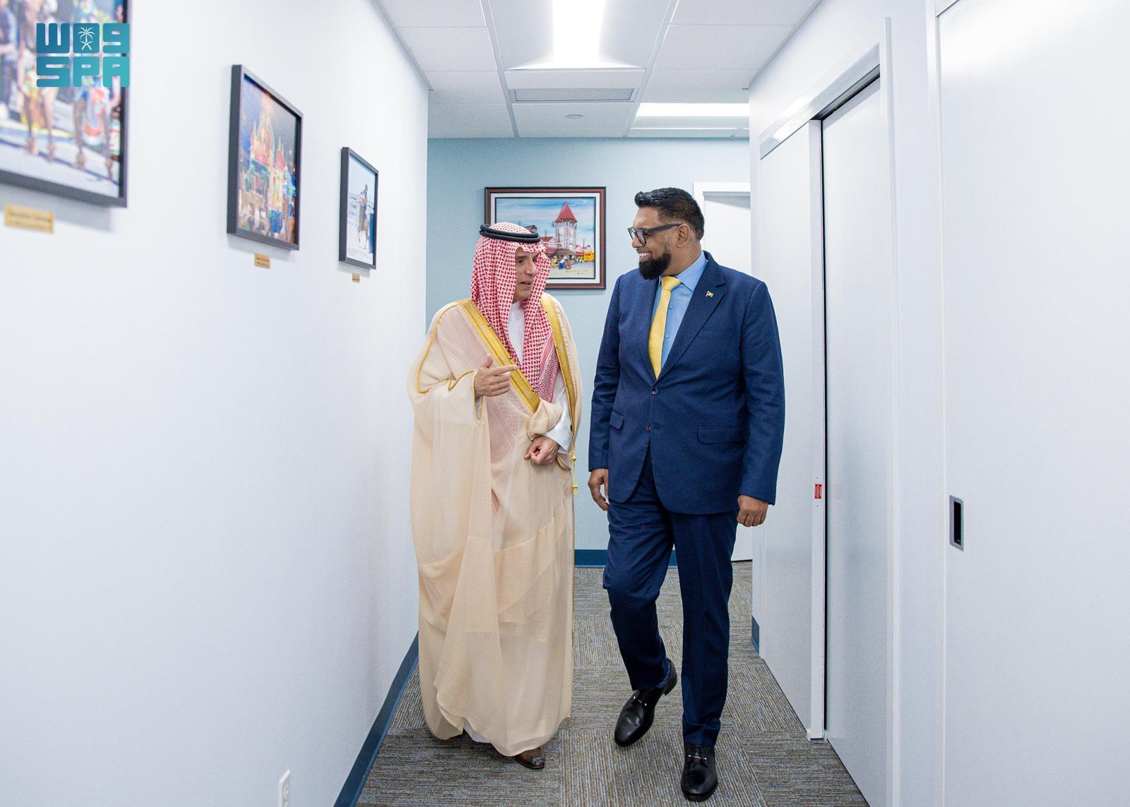 ونقل معاليه تحيات خادم الحرمين الشريفين الملك سلمان بن عبدالعزيز آل سعود ، وصاحب السمو الملكي الأمير محمد بن سلمان بن عبدالعزيز آل سعود ولي العهد رئيس مجلس الوزراء -حفظهما الله- لدولته وتمنياتهما لحكومة وشعب جمهورية غويانا التعاونية المزيد من التقدم والازدهار، فيما حمله دولته تحياته وتقديره لخادم الحرمين الشريفين ولسمو ولي العهد وحكومة وشعب المملكة العربية السعودية.
