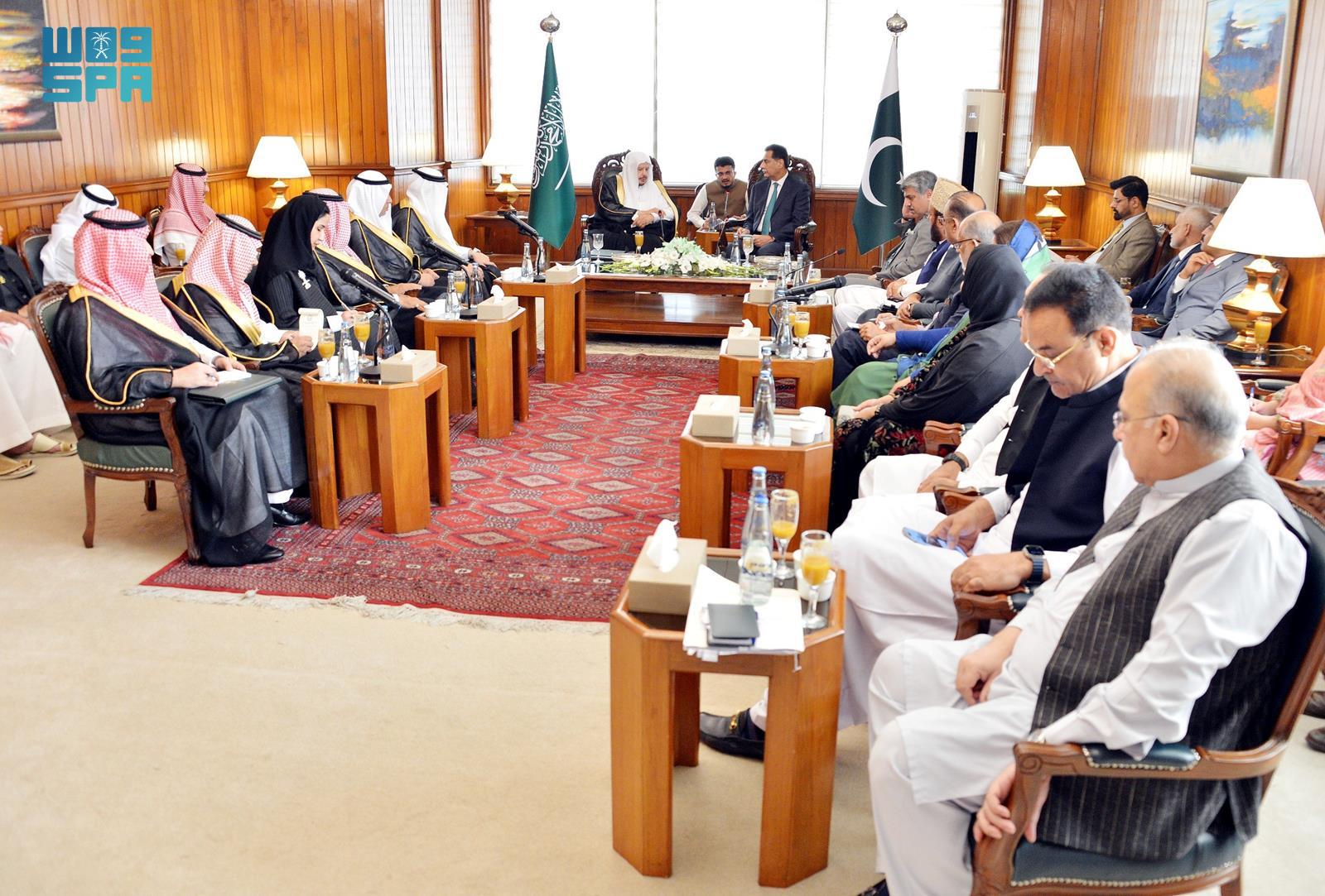 من جانبه عبر معالي الدكتور عبدالله آل الشيخ خلال جلسة المباحثات عن شكره وتقديره لمعالي رئيس الجمعية الوطنية الباكستانية على حفاوة الاستقبال وكرم الضيافة, منوهًا معاليه بما تشهده العلاقات السعودية الباكستانية الأخوية من تقدم كبير على مختلف الأصعدة.