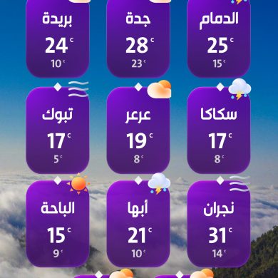 وأشار التقرير إلى أن حركة الرياح السطحية على البحر الأحمر شمالية شرقية إلى شمالية غربية بسرعة 12-40 كم/ساعة على الجزء الشمالي والأوسط، وجنوبية شرقية إلى جنوبية غربية وتتحول مساءً شمالية غربية إلى شمالية شرقية بسرعة 10-30 كم/ساعة على الجزء الجنوبي، وارتفاع الموج من نصف المتر إلى متر ونصف المتر على الجزء الشمالي والأوسط، ومن نصف المتر إلى متر على الجزء الجنوبي، وحالة البحر خفيف إلى متوسط الموج على الجزء الشمالي والأوسط، وخفيف الموج على الجزء الجنوبي.