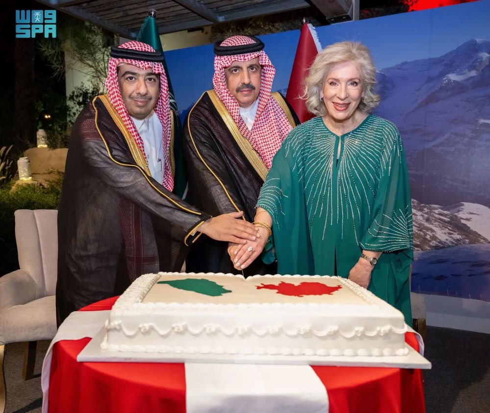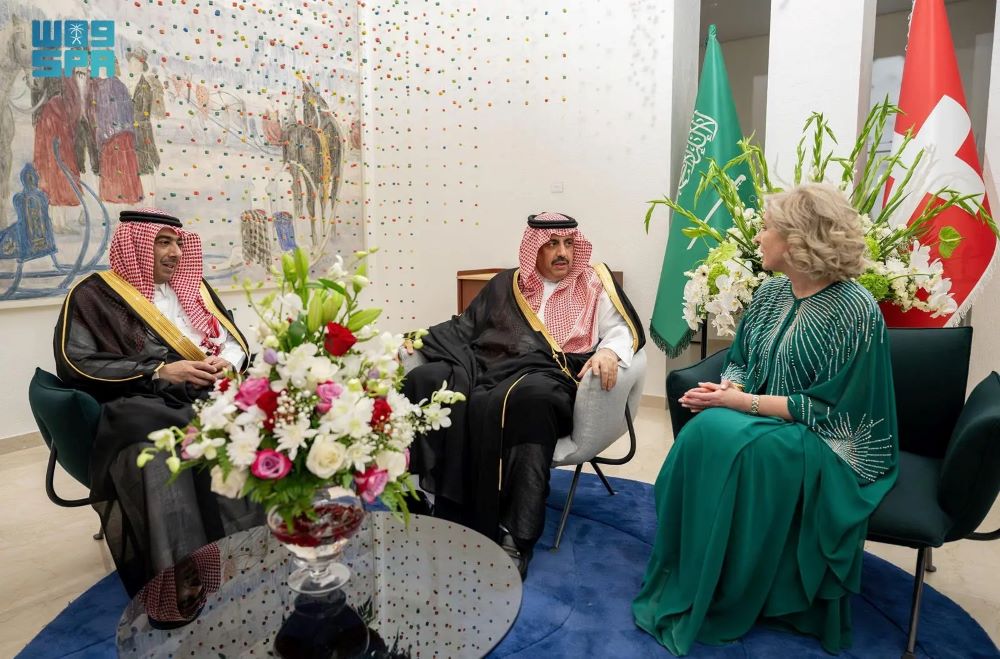 وكان في استقبال معاليه لدى وصوله لمقر الحفل، سفيرة سويسرا الاتحادية لدى المملكة ياسمين شاتيلا، وعددٌ من منسوبي السفارة.