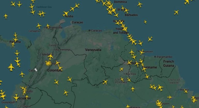 كشفت صور لحركة الطيران المدني حول العالم خلو أجواء فنزويلا بالكامل من أي مرجة للطائرات المدنية تحسبًا لأي عمل عسكري تقوم به الولايات المتحدة ضد كراكاس.