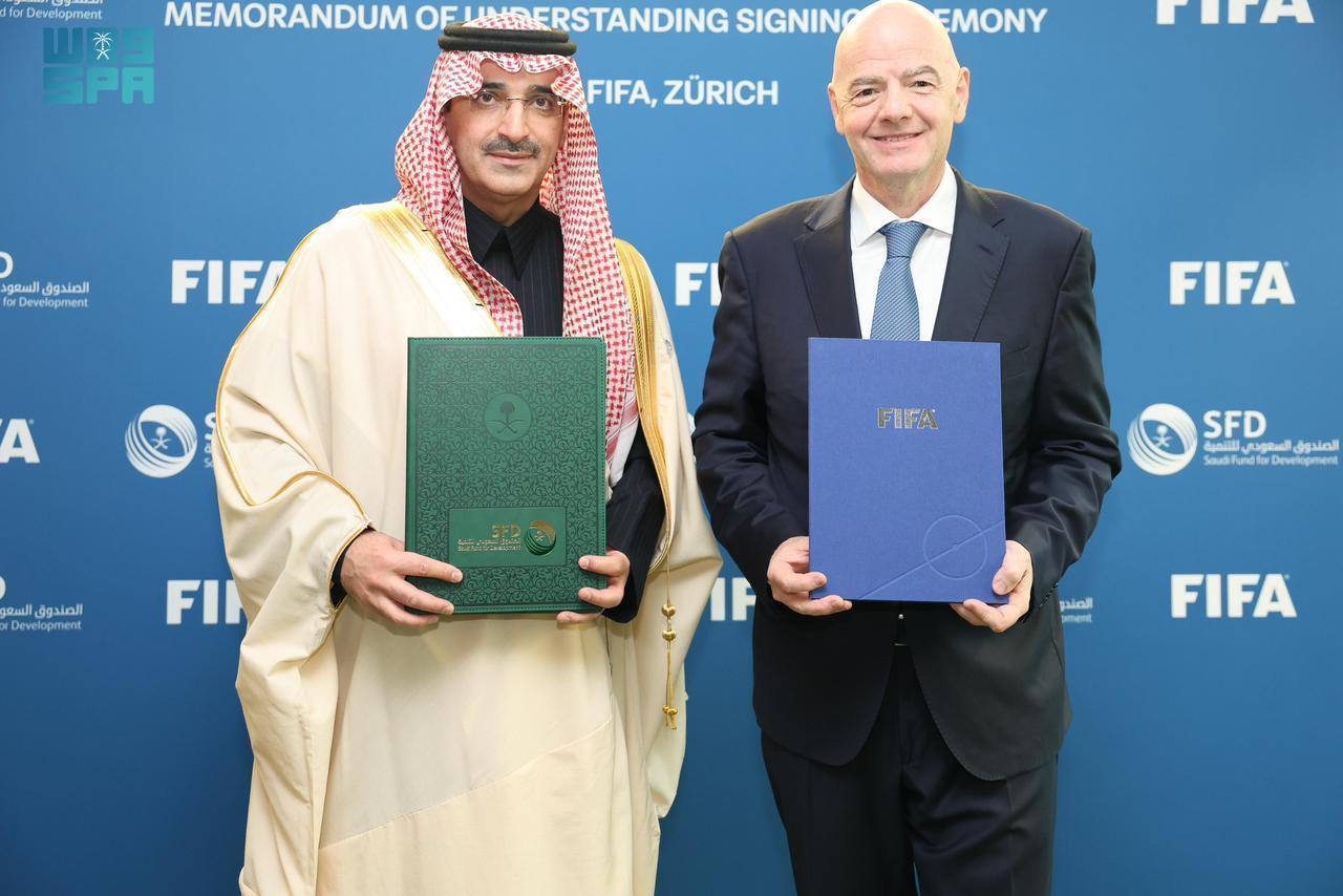 وقّع الرئيس التنفيذي للصندوق السعودي للتنمية سلطان بن عبدالرحمن المرشد، مع رئيس الاتحاد الدولي لكرة القدم جياني إنفانتينو، مذكرة تفاهم لتخصيص مليار دولار عبر القروض التنموية الميسّرة المقدمة من الصندوق السعودي للتنمية؛ للإسهام في تمويل البنية التحتية الأساسية للقطاع الرياضي في مختلف الدول النامية والأقل نموًا حول العالم، في خطوة تهدف إلى تسخير إمكانات الرياضة لدفع عجلة التنمية الاقتصادية والاجتماعية.