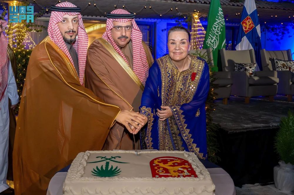وكان في استقبال معاليه لدى وصوله مقر الحفل سفيرة جمهورية فنلندا لدى المملكة آنو إريكا فيليانين، وعدد من منسوبي السفارة.