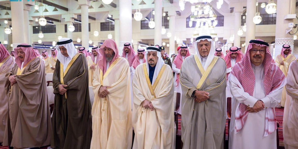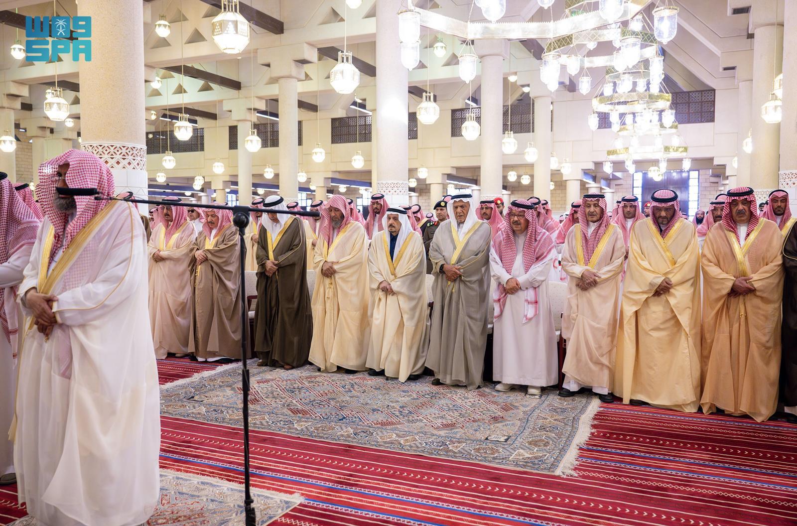 وأدى الصلاة مع سموه، صاحب السمو الملكي الأمير تركي بن فيصل بن عبدالعزيز، وصاحب السمو الملكي الأمير سعود بن سعد بن عبدالعزيز، وصاحب السمو الملكي الأمير منصور بن سعود بن عبدالعزيز، وصاحب السمو الأمير تركي بن عبدالله بن عبدالرحمن، وصاحب السمو الأمير خالد بن مساعد بن عبدالرحمن، وصاحب السمو الأمير تركي بن محمد بن عبدالعزيز بن تركي، وصاحب السمو الملكي الأمير خالد بن بندر بن عبدالعزيز مستشار خادم الحرمين الشريفين، وصاحب السمو الملكي الأمير متعب بن عبدالله بن عبدالعزيز، وصاحب السمو الأمير الدكتور سعود بن سلمان بن محمد آل سعود، وصاحب السمو الملكي الأمير محمد بن مشاري بن عبدالعزيز، وصاحب السمو الملكي الأمير مشاري بن سعود بن عبدالعزيز، وصاحب السمو فهد بن محمد بن سعود الكبير، وصاحب السمو الملكي الأمير طلال بن بدر بن سعود، وصاحب السمو الأمير أحمد بن عبدالله بن عبدالرحمن، وصاحب السمو الأمير محمد بن سعد بن خالد، وصاحب السمو الملكي الأمير الوليد بن بدر بن سعود، وصاحب السمو الأمير خالد بن سعود بن خالد بن محمد بن عبدالرحمن، وصاحب السمو الأمير محمد بن سعود بن خالد بن محمد بن عبدالرحمن، وصاحب السمو الملكي الأمير الدكتور فيصل بن مشعل بن سعود أمير منطقة القصيم، وصاحب السمو الملكي الأمير فيصل بن تركي بن عبدالعزيز المستشار في الديوان الملكي، وصاحب السمو الملكي الأمير تركي بن بندر بن عبدالعزيز قائد القوات الجوية الملكية السعودية، وصاحب السمو الملكي الأمير محمد بن بندر بن عبدالعزيز، وصاحب السمو الملكي الأمير محمد بن خالد بن عبدالله بن فيصل بن عبدالعزيز، وصاحب السمو الأمير نواف بن محمد بن عبدالله، وصاحب السمو الملكي الأمير فيصل بن تركي بن ناصر، وصاحب السمو الأمير بندر بن سعد بن خالد، وصاحب السمو الأمير فهد بن خالد بن عبدالله بن محمد، وصاحب السمو الملكي الأمير نواف بن فيصل بن فهد، وصاحب السمو الملكي الأمير محمد بن فيصل بن بندر، وصاحب السمو الأمير سعد بن عبدالله بن عبدالعزيز بن مساعد بن جلوي، وصاحب السمو الملكي الأمير سعود بن طلال بن بدر بن سعود محافظ الأحساء، وصاحب السمو الملكي فهد بن خالد بن سلطان، وصاحب السمو الملكي الأمير عبدالله بن خالد بن سلطان، وصاحب السمو الملكي الأمير متعب بن مشعل بن بدر بن سعود بن عبدالعزيز نائب أمير منطقة الجوف، وصاحب السمو الملكي الأمير فيصل بن محمد بن فيصل بن بندر.