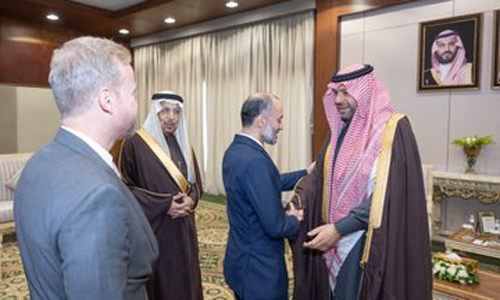 التقى اليوم صاحب السمو الملكي الأمير فيصل بن خالد بن سلطان بن عبدالعزيز أمير منطقة الحدود الشمالية، وزير الاستثمار المهندس خالد بن عبدالعزيز الفالح، يرافقه رئيس الهيئة العامة للمنافذ والجمارك في الجمهورية العربية السورية قتيبة بن أحمد بدوي وعدد من أعضاء الوفد السوري المشارك في المنتدى، ضمن فعاليات منتدى الحدود الشمالية للاستثمار 2025.