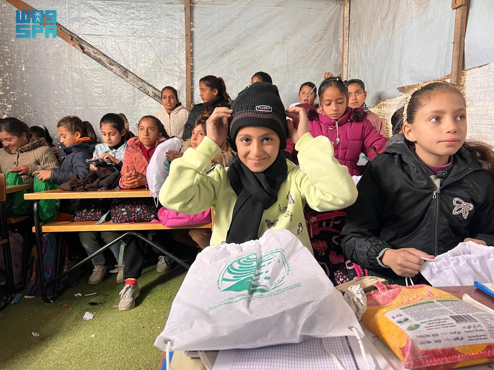 وزع مركز الملك سلمان للإغاثة والأعمال الإنسانية أمس ملابس شتوية على الطلاب في المدارس والمواقع التعليمية في منطقة مواصي خان يونس جنوب قطاع غزة، ضمن الحملة الشعبية السعودية لإغاثة الشعب الفلسطيني الشقيق في القطاع.