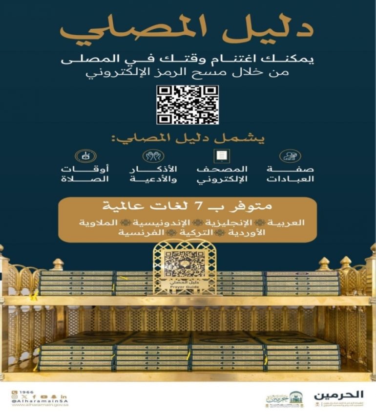 وأكدت الهيئة أن منصة “دليل المصلي” تأتي امتدادًا لخطط التحول الرقمي التي تنتهجها؛ بهدف الارتقاء بمستوى الخدمات المقدمة داخل الحرمين الشريفين، وتمكين القاصدين من الاستفادة من التقنيات الحديثة في أداء عباداتهم بكل يسر وطمأنينة.
