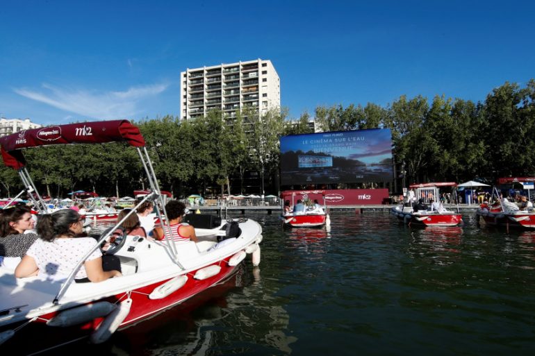 38 قارباً كهربائياً للجمهور لمشاهدة فيلم مجاني تم عرضه فوق نهر السين في باريس، بما يسمى السينما العائمة.... Read More