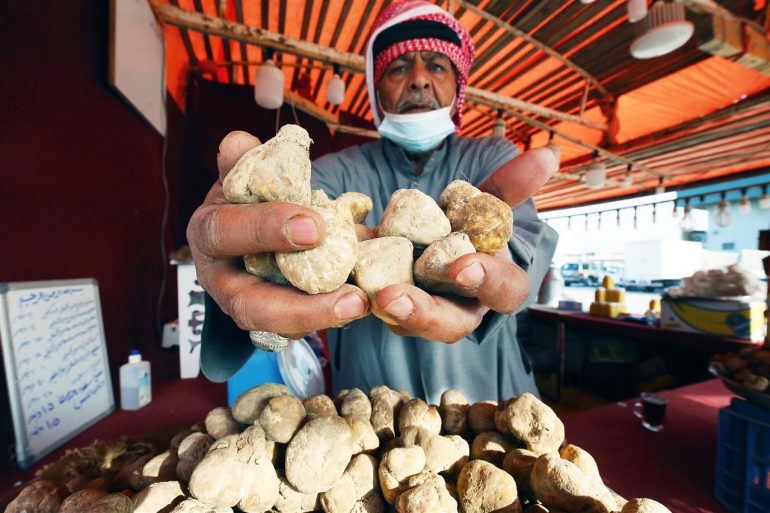 بائع كويتي يعرض بضاعته من الكمأ الصحراوي في أحد أسواق العاصمة الكويت.... Read More