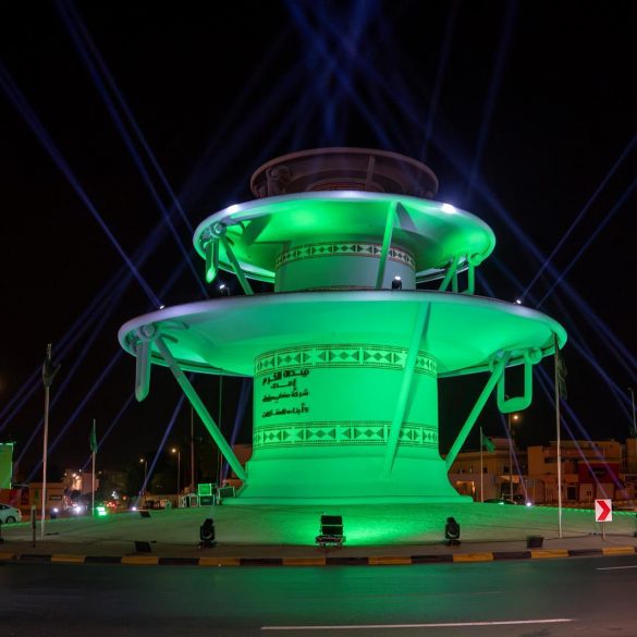 توشحت المباني الحكومية والشوارع والحدائق والميادين والمعالم البارزة في منطقة تبوك باللون الأخضر، في لوحة وطنية بهيجة احتفاءً باليوم الوطني... Read More